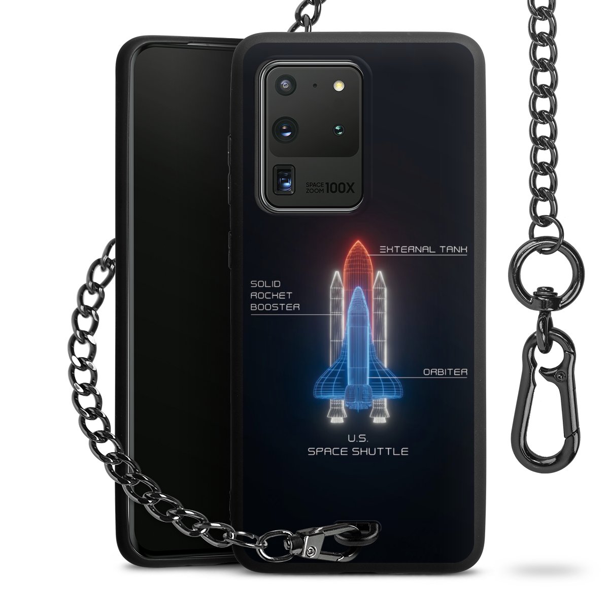 • Mattschwarze Handyhülle mit Metallkette