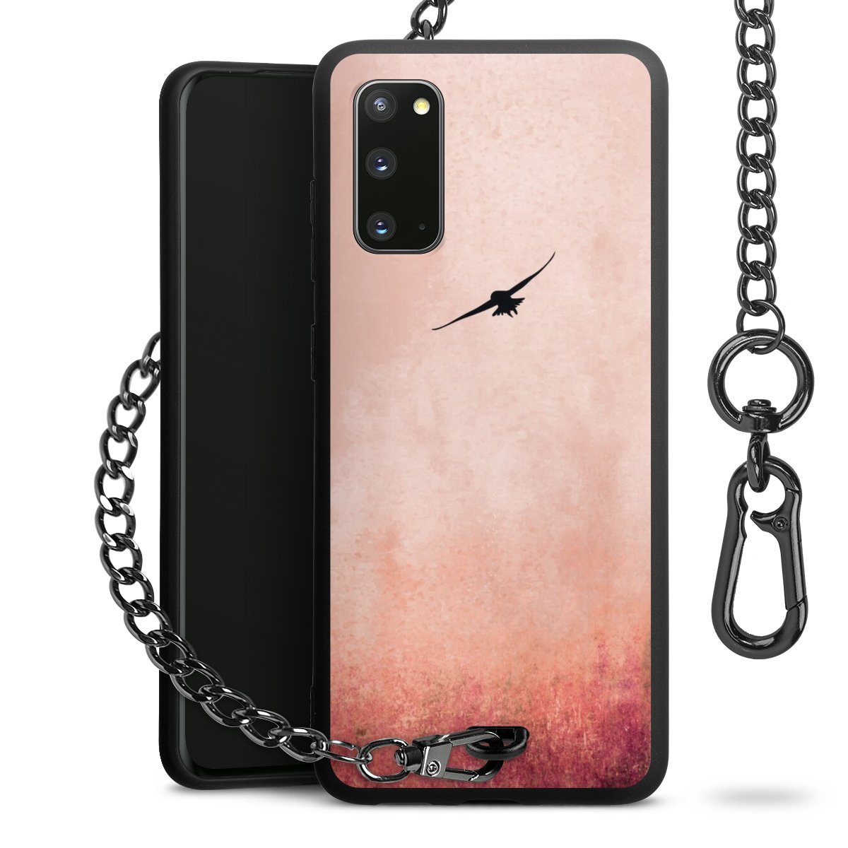 • Mattschwarze Handyhülle mit Metallkette