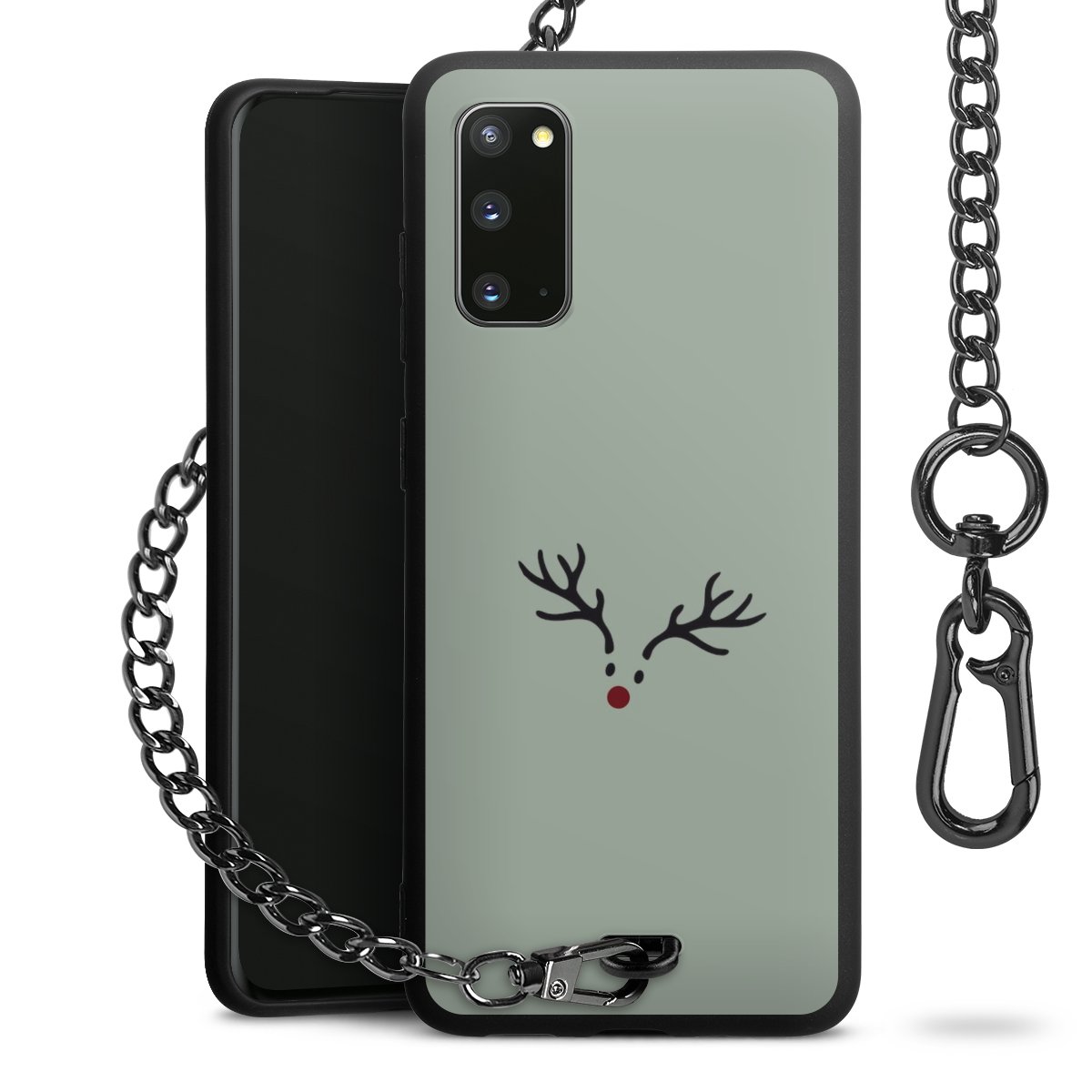 Die Handyhülle verfügt über eine mittig am unteren Rand platzierte Öse, an der die Metallkette stabil befestigt ist. Bestelle die Hülle einfach für Dein Smartphone-Modell, dann passt sie wie angegossen und Du brauchst sie bloß einmal anzudrücken. Handy in die Tasche, Karabiner an den Hosenbund – schon kann die Party starten.