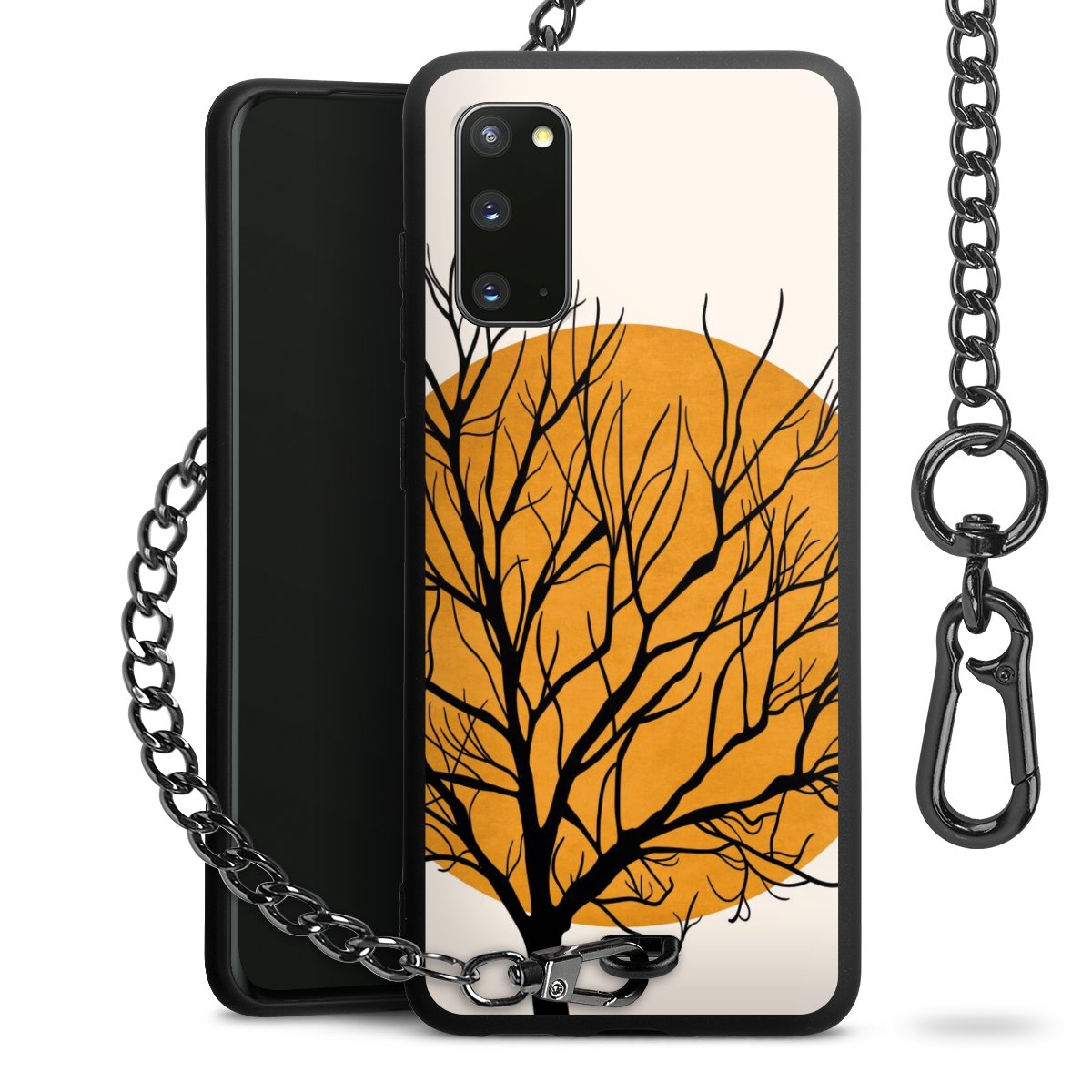 • Mattschwarze Handyhülle mit Metallkette