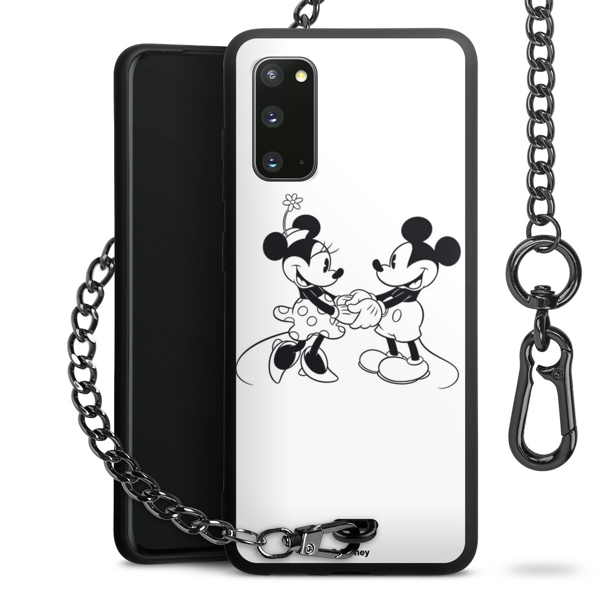 Die Handyhülle verfügt über eine mittig am unteren Rand platzierte Öse, an der die Metallkette stabil befestigt ist. Bestelle die Hülle einfach für Dein Smartphone-Modell, dann passt sie wie angegossen und Du brauchst sie bloß einmal anzudrücken. Handy in die Tasche, Karabiner an den Hosenbund – schon kann die Party starten.