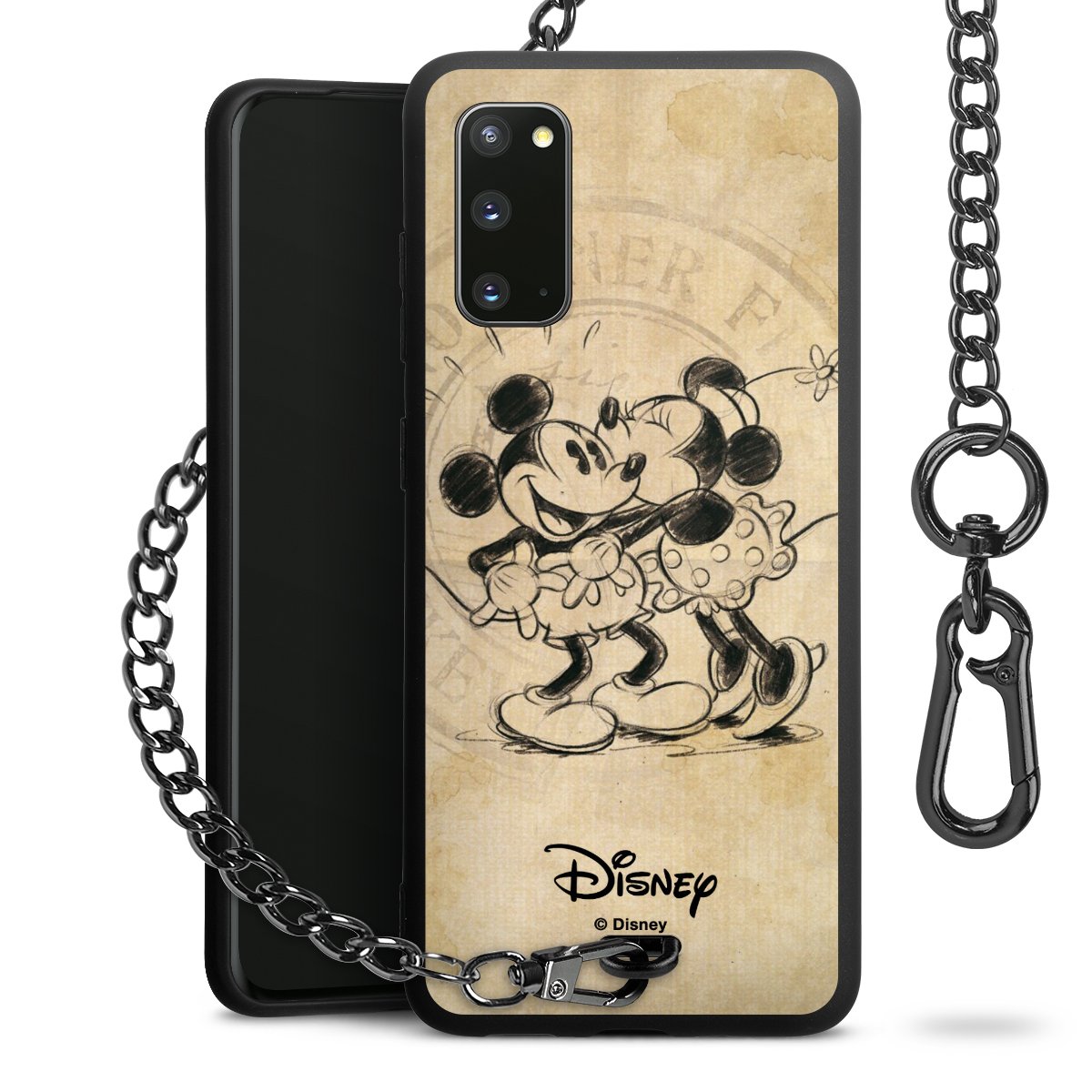 Die Handyhülle verfügt über eine mittig am unteren Rand platzierte Öse, an der die Metallkette stabil befestigt ist. Bestelle die Hülle einfach für Dein Smartphone-Modell, dann passt sie wie angegossen und Du brauchst sie bloß einmal anzudrücken. Handy in die Tasche, Karabiner an den Hosenbund – schon kann die Party starten.
