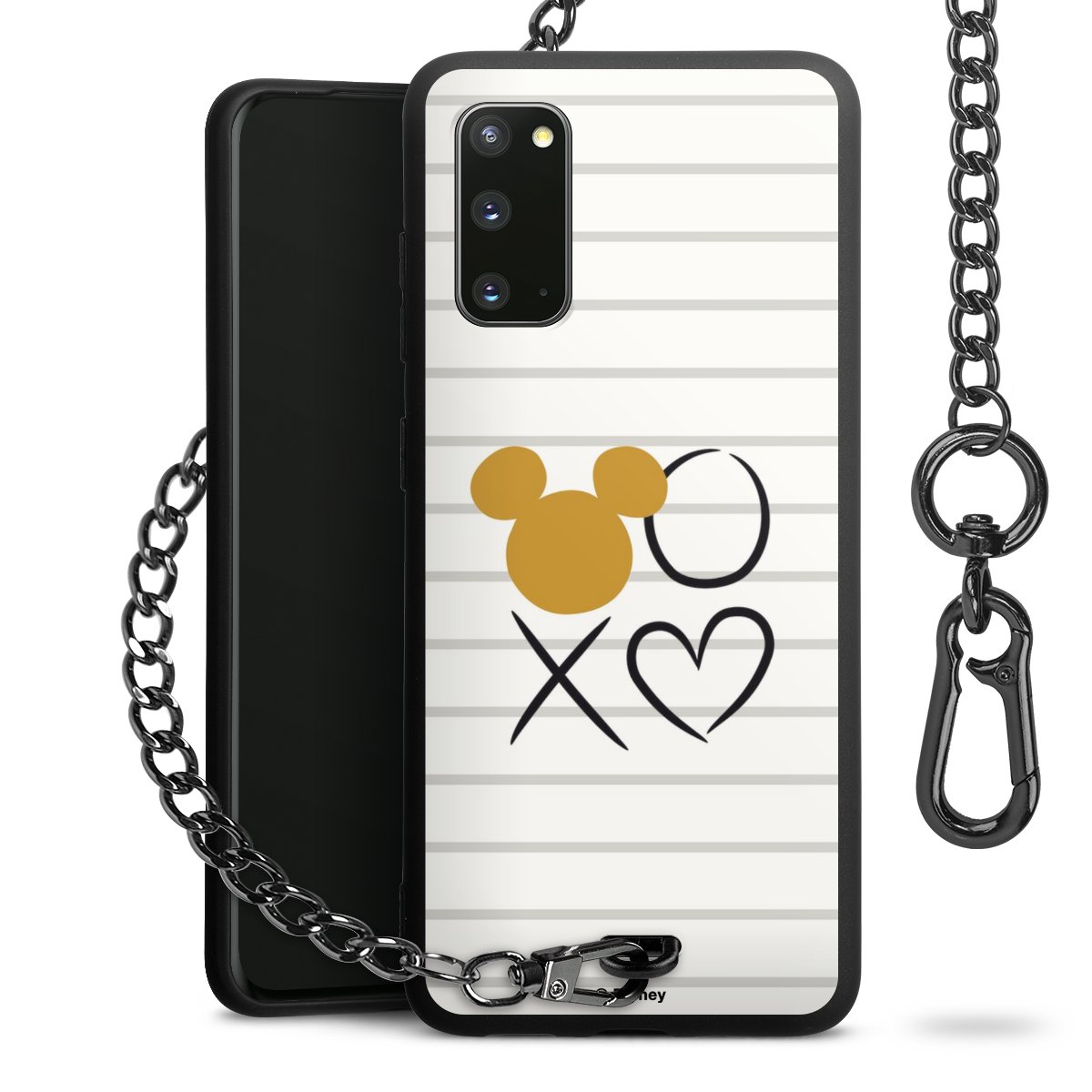 Die Handyhülle verfügt über eine mittig am unteren Rand platzierte Öse, an der die Metallkette stabil befestigt ist. Bestelle die Hülle einfach für Dein Smartphone-Modell, dann passt sie wie angegossen und Du brauchst sie bloß einmal anzudrücken. Handy in die Tasche, Karabiner an den Hosenbund – schon kann die Party starten.
