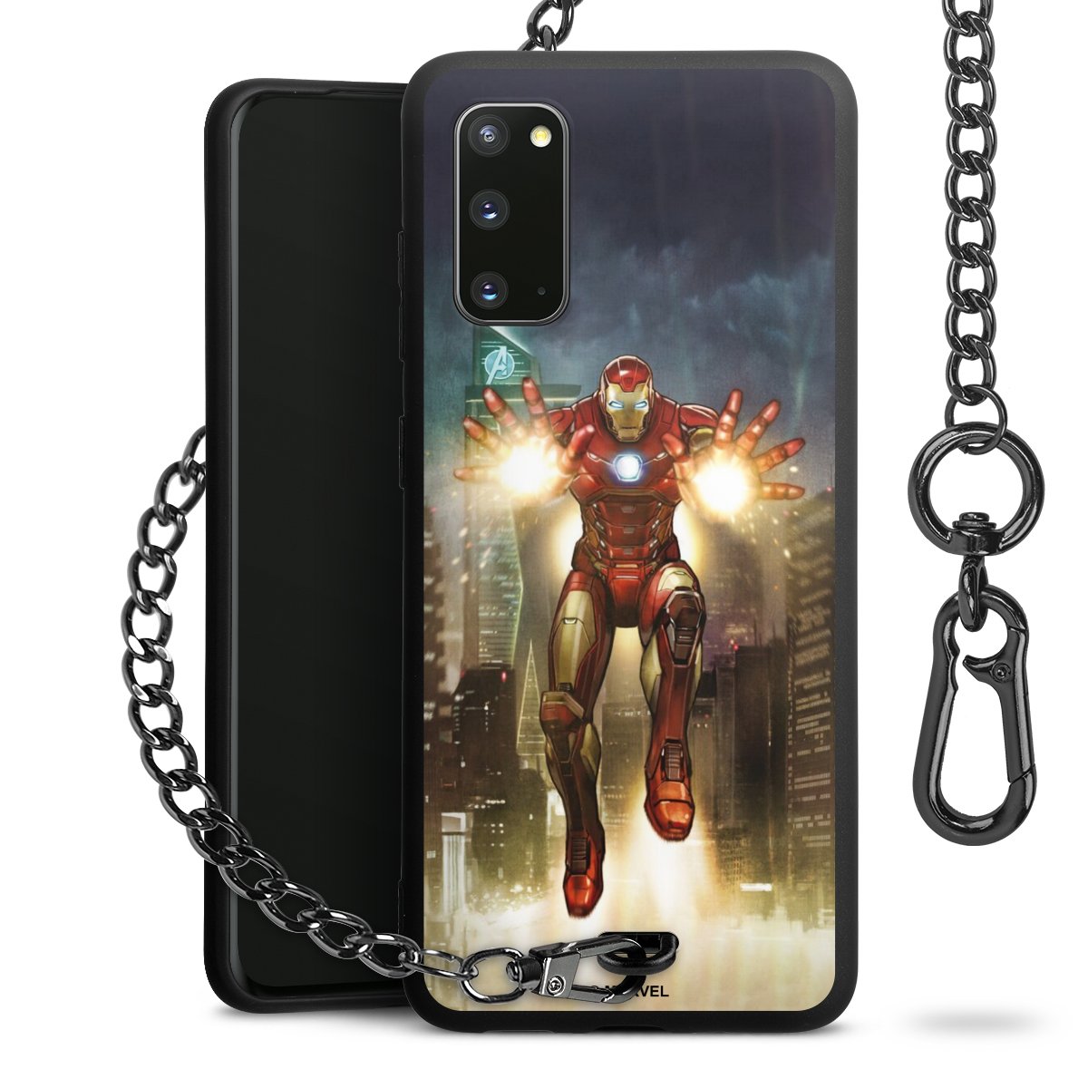• Mattschwarze Handyhülle mit Metallkette