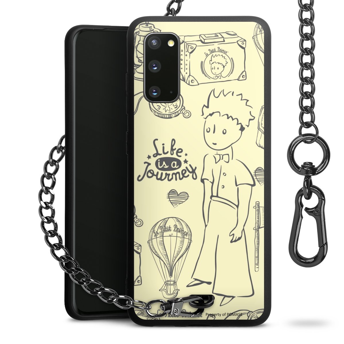Die Handyhülle verfügt über eine mittig am unteren Rand platzierte Öse, an der die Metallkette stabil befestigt ist. Bestelle die Hülle einfach für Dein Smartphone-Modell, dann passt sie wie angegossen und Du brauchst sie bloß einmal anzudrücken. Handy in die Tasche, Karabiner an den Hosenbund – schon kann die Party starten.