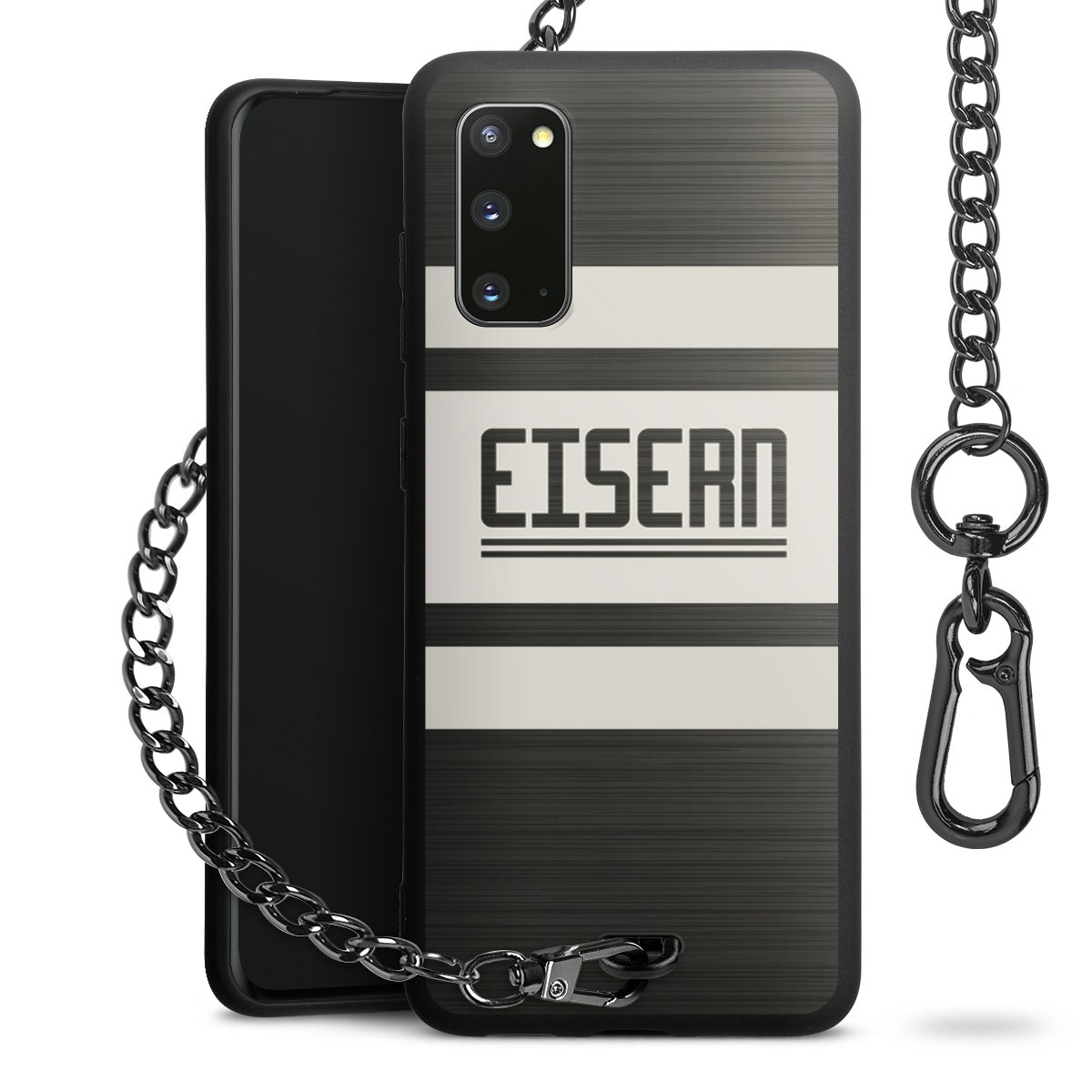 • Mattschwarze Handyhülle mit Metallkette