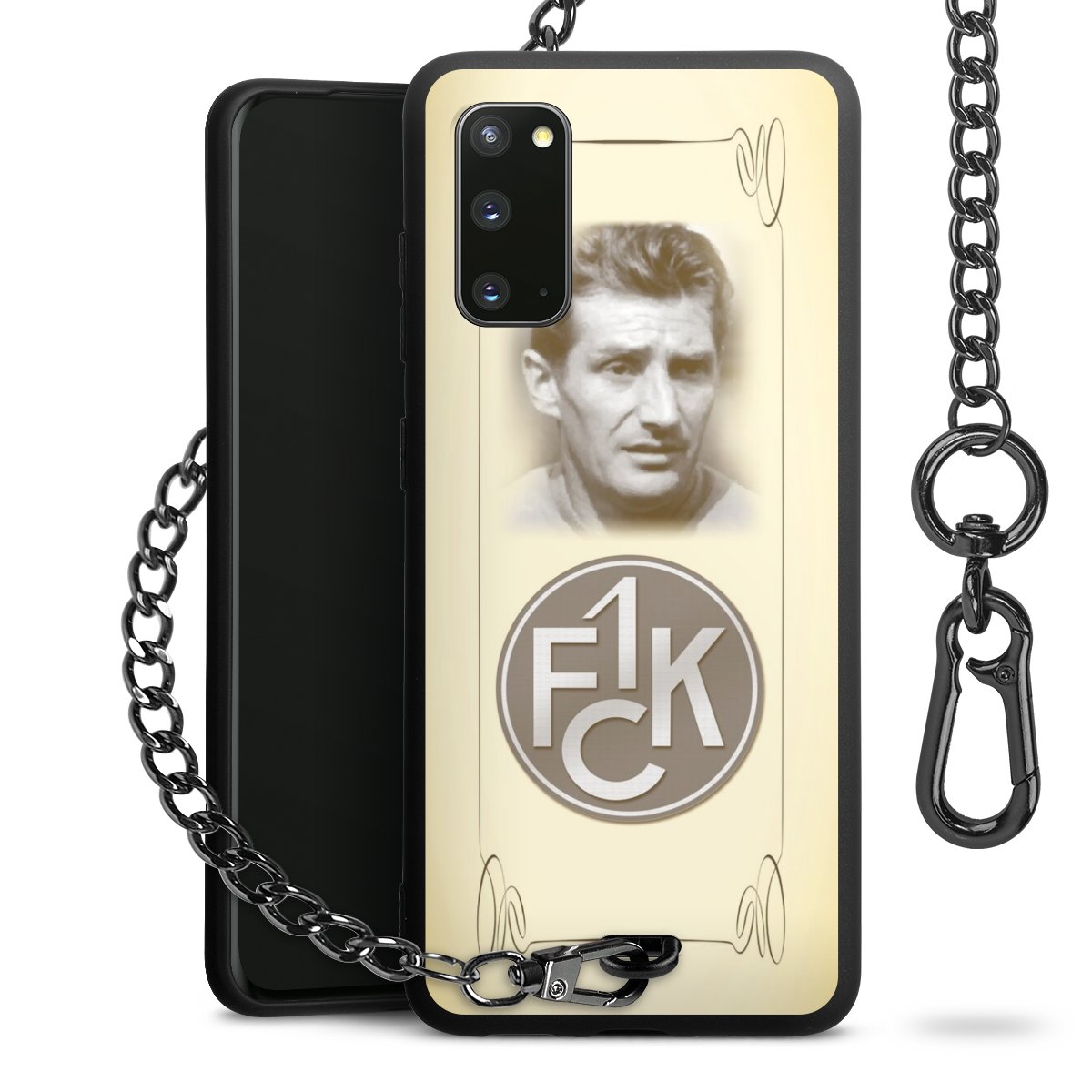 Die Handyhülle verfügt über eine mittig am unteren Rand platzierte Öse, an der die Metallkette stabil befestigt ist. Bestelle die Hülle einfach für Dein Smartphone-Modell, dann passt sie wie angegossen und Du brauchst sie bloß einmal anzudrücken. Handy in die Tasche, Karabiner an den Hosenbund – schon kann die Party starten.