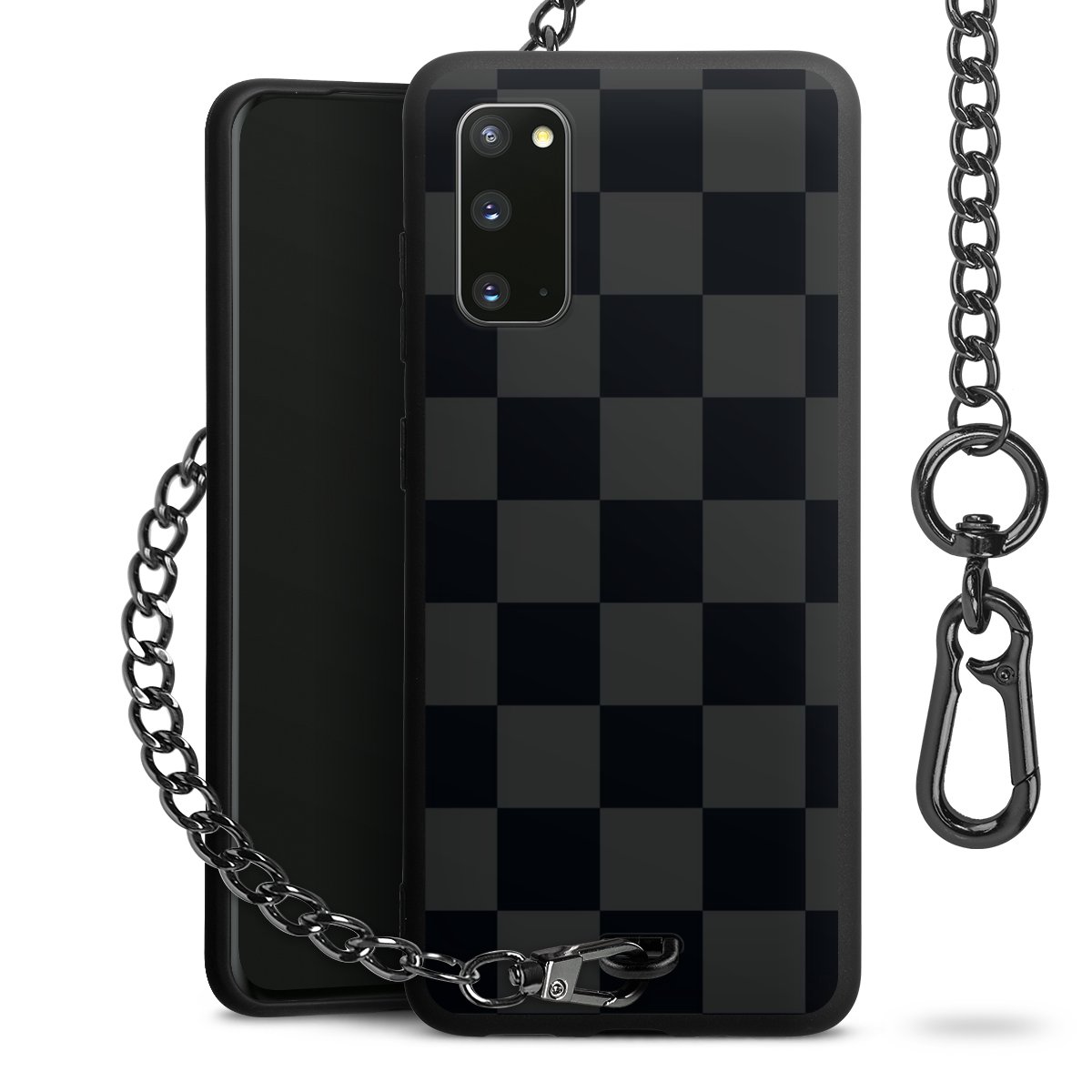 • Mattschwarze Handyhülle mit Metallkette