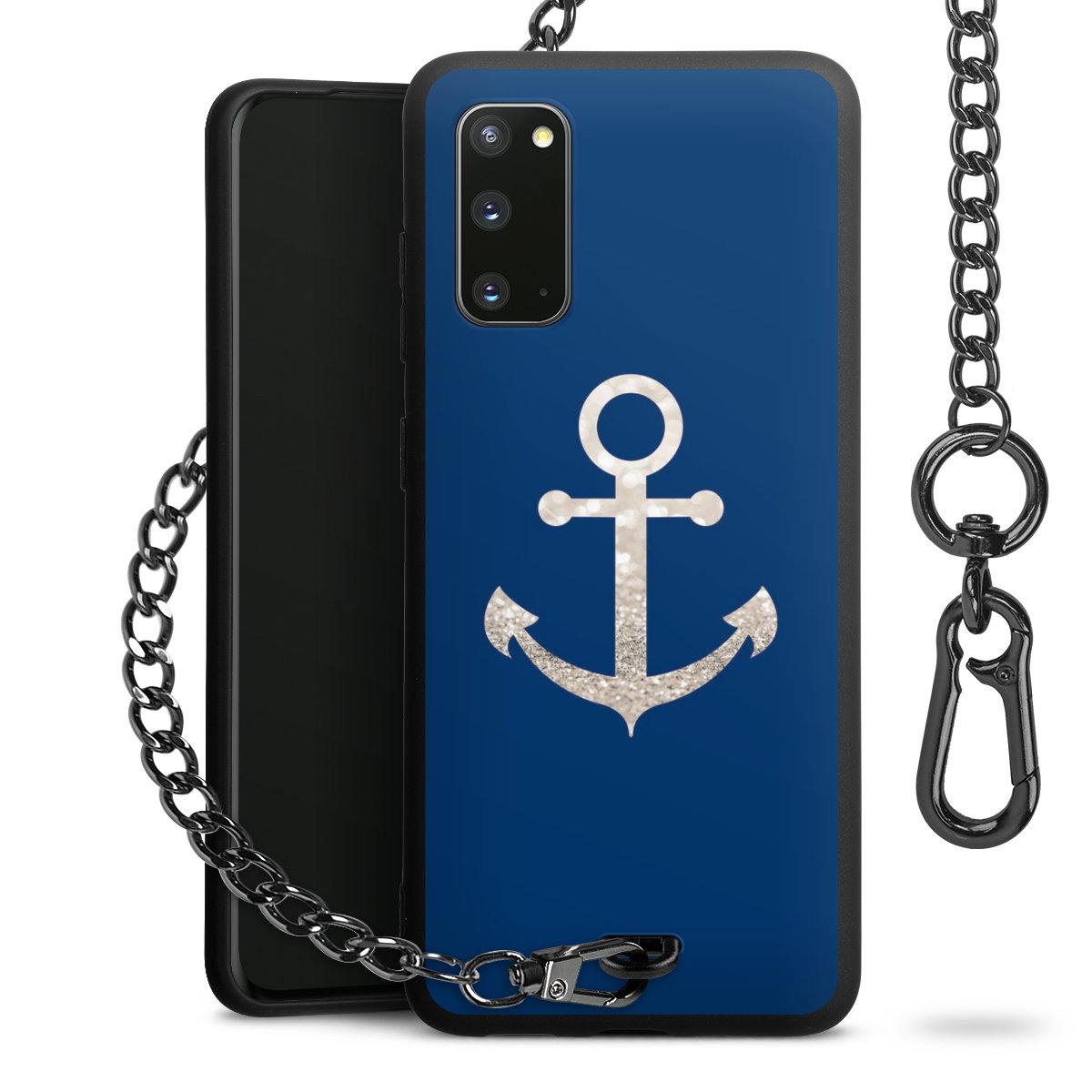 - Mattschwarze Handyhülle mit Metallkette