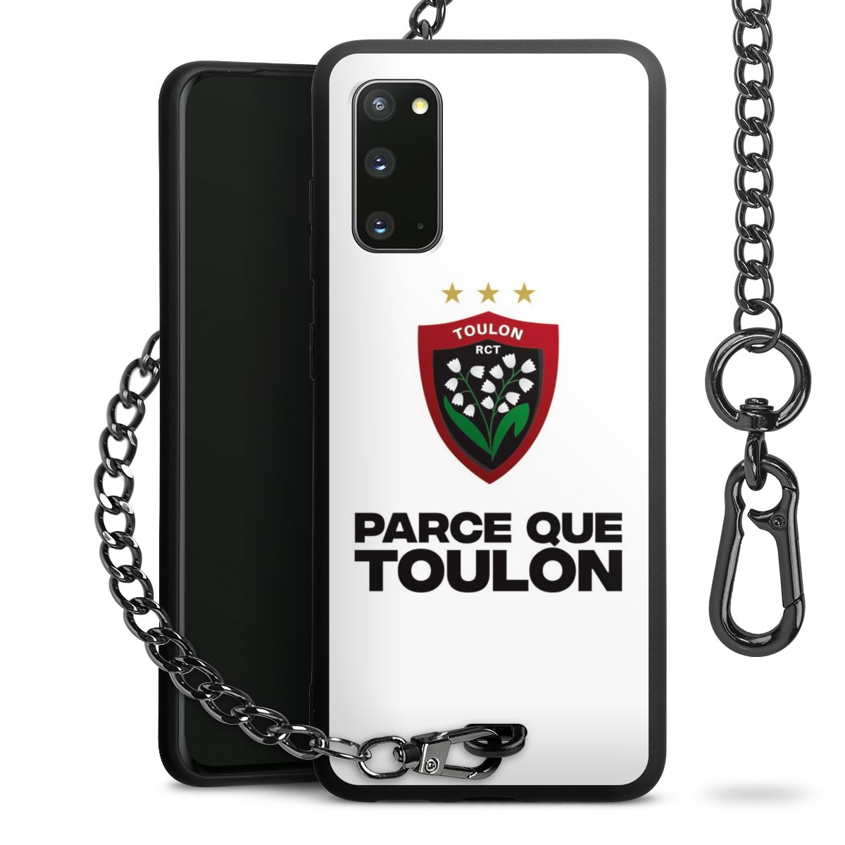Die mattschwarze Silikon-Handyhülle besteht aus robustem TPU (thermoplastisches Polyurethan). Sie ist flexibel und schützt Dein Smartphone vor Stößen und Kratzern. Die Kette sowie der Karabinerhaken sind aus Metall in Gunmetal-Optik gefertigt. Für dieses Produkt kommen ausschließlich TÜV-geprüfte Materialien zum Einsatz.
