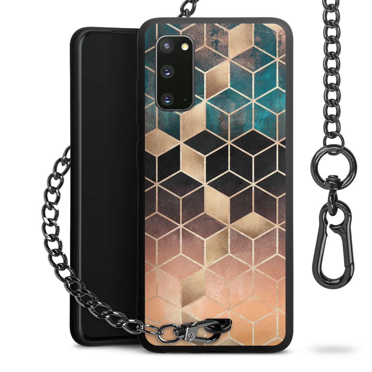 • Mattschwarze Handyhülle mit Metallkette