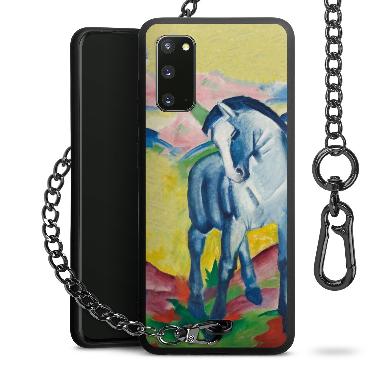 Die Handyhülle verfügt über eine mittig am unteren Rand platzierte Öse, an der die Metallkette stabil befestigt ist. Bestelle die Hülle einfach für Dein Smartphone-Modell, dann passt sie wie angegossen und Du brauchst sie bloß einmal anzudrücken. Handy in die Tasche, Karabiner an den Hosenbund – schon kann die Party starten.