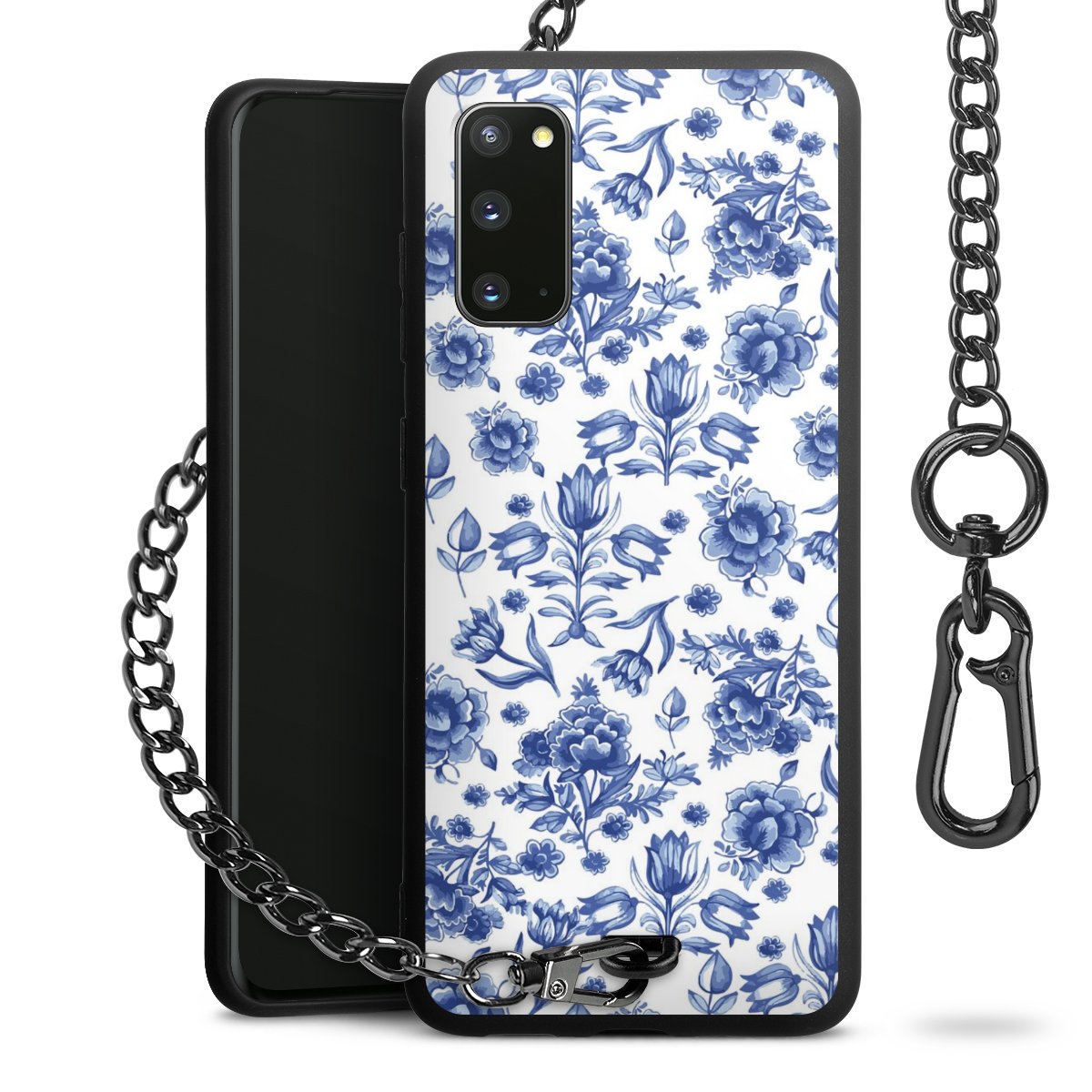 - Mattschwarze Handyhülle mit Metallkette