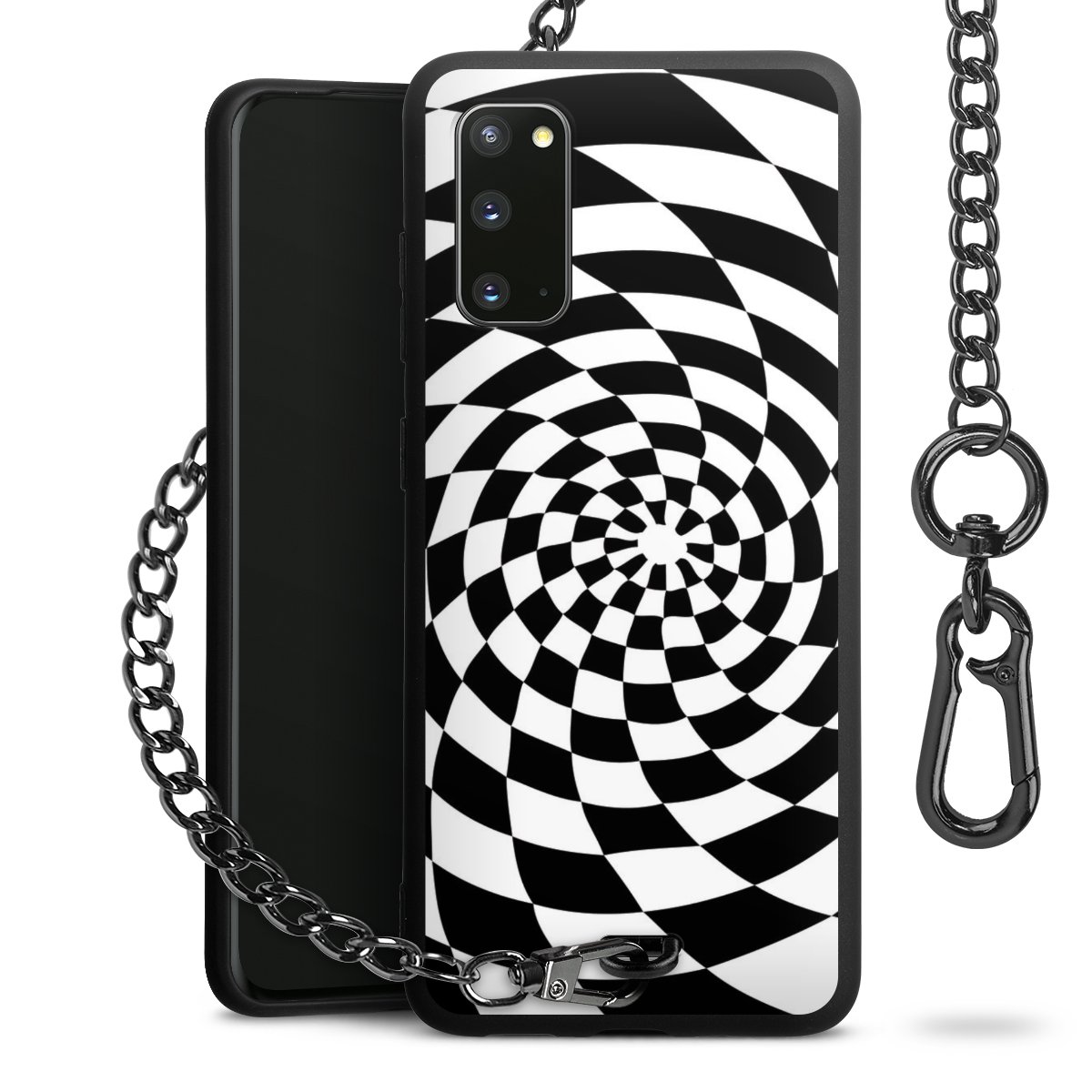 • Mattschwarze Handyhülle mit Metallkette