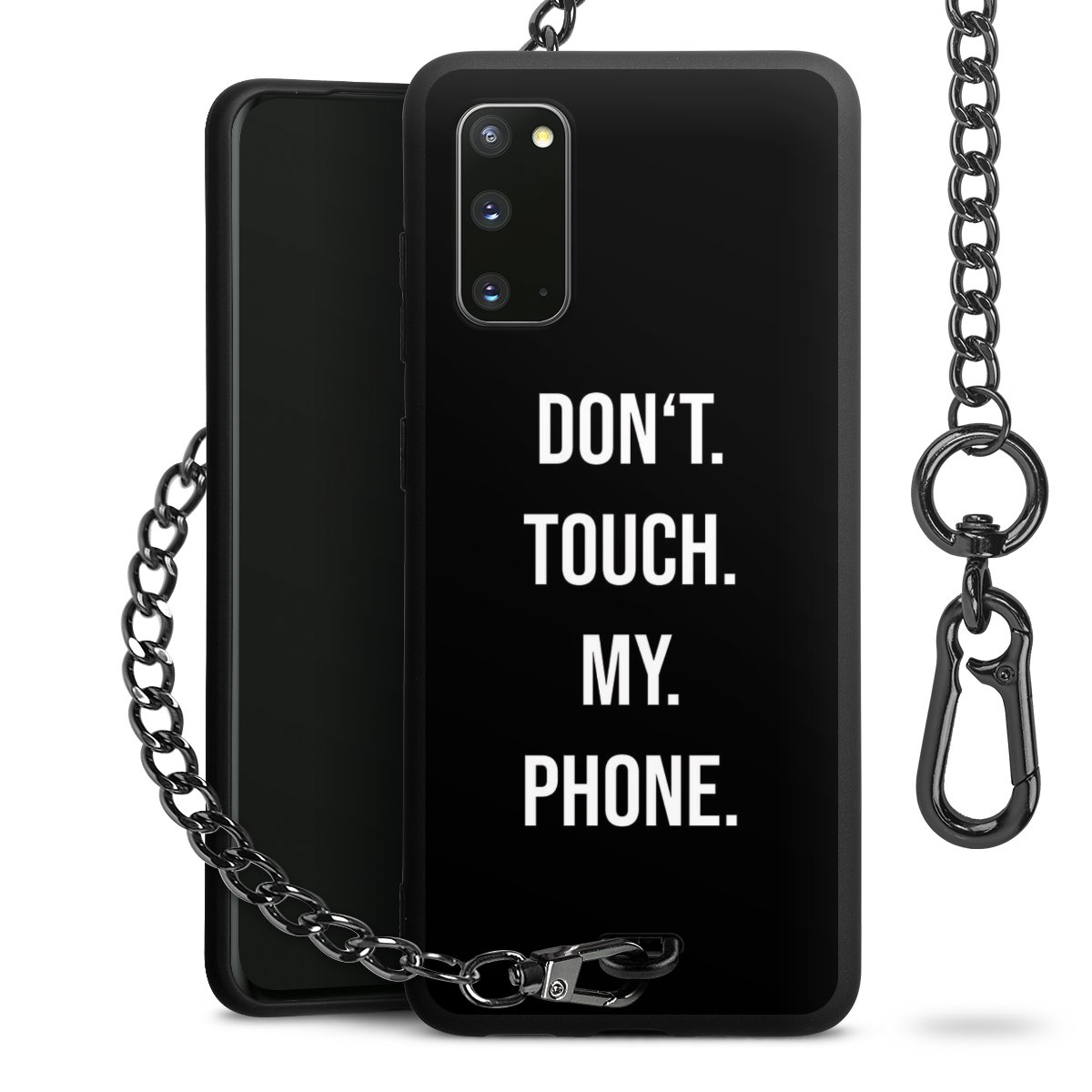 - Mattschwarze Handyhülle mit Metallkette