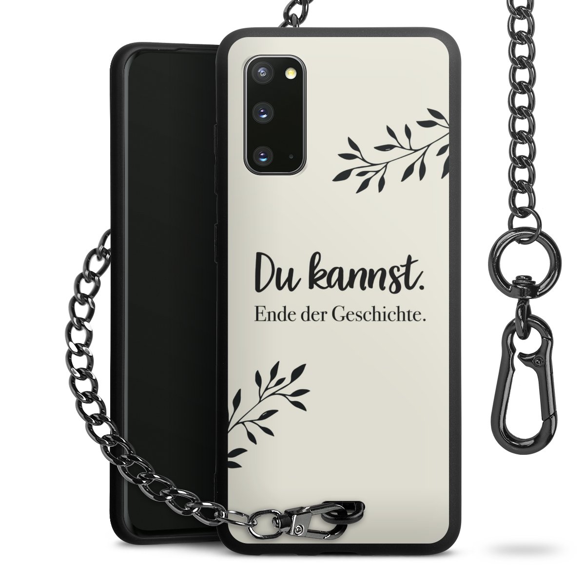 Die mattschwarze Silikon-Handyhülle besteht aus robustem TPU (thermoplastisches Polyurethan). Sie ist flexibel und schützt Dein Smartphone vor Stößen und Kratzern. Die Kette sowie der Karabinerhaken sind aus Metall in Gunmetal-Optik gefertigt. Für dieses Produkt kommen ausschließlich TÜV-geprüfte Materialien zum Einsatz.