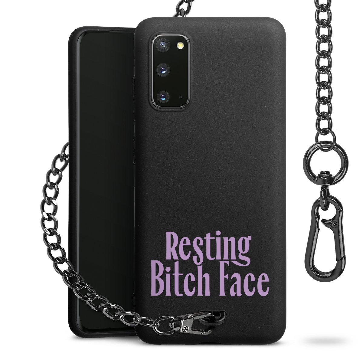 - Mattschwarze Handyhülle mit Metallkette