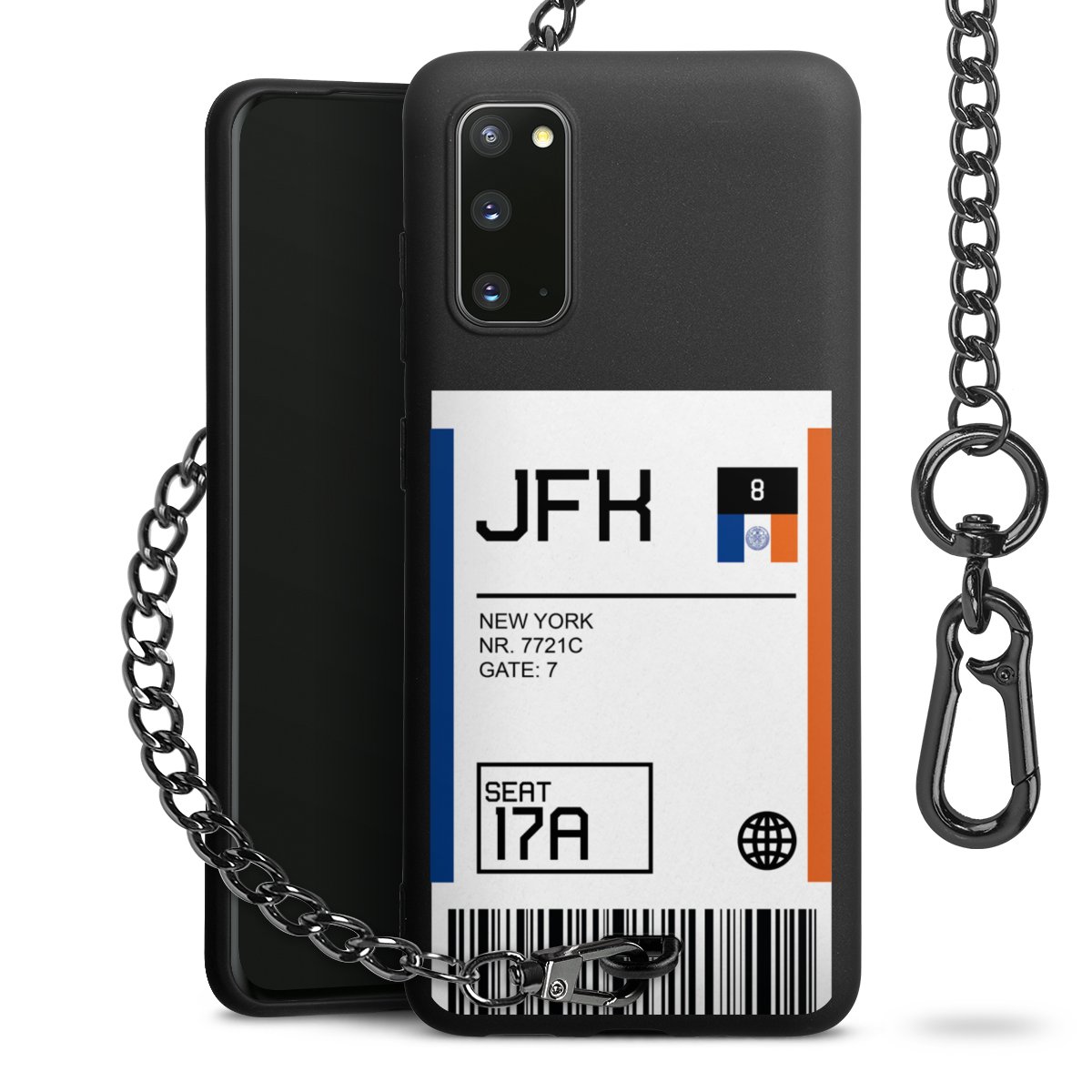 - Mattschwarze Handyhülle mit Metallkette