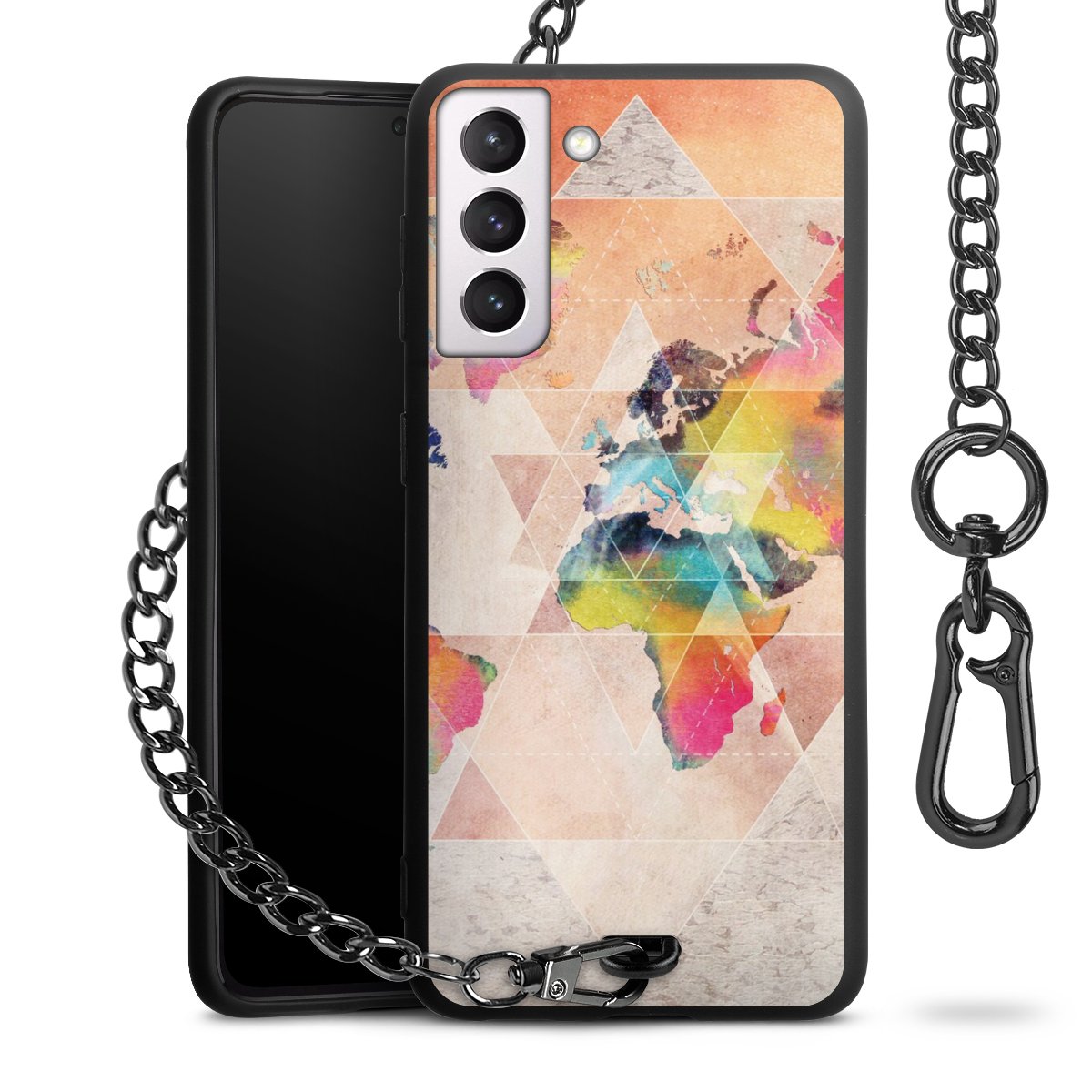 • Mattschwarze Handyhülle mit Metallkette