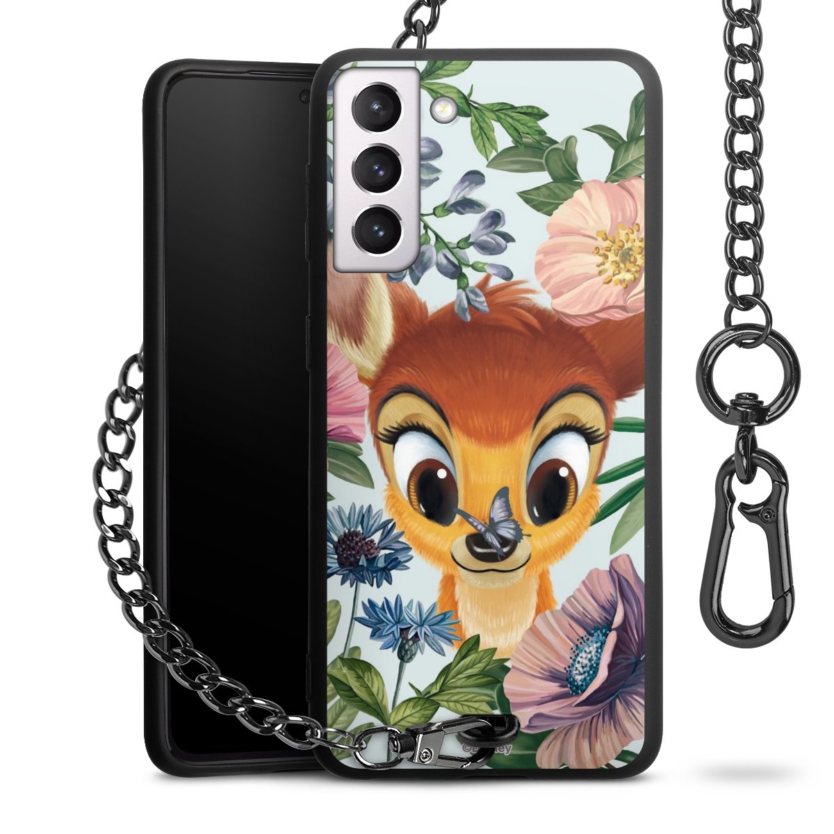 Die Handyhülle verfügt über eine mittig am unteren Rand platzierte Öse, an der die Metallkette stabil befestigt ist. Bestelle die Hülle einfach für Dein Smartphone-Modell, dann passt sie wie angegossen und Du brauchst sie bloß einmal anzudrücken. Handy in die Tasche, Karabiner an den Hosenbund – schon kann die Party starten.