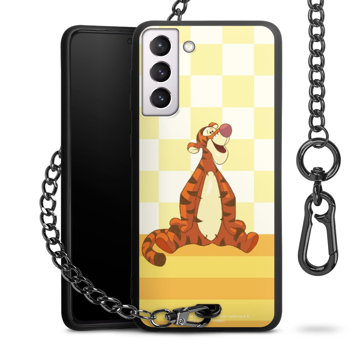 Die mattschwarze Silikon-Handyhülle besteht aus robustem TPU (thermoplastisches Polyurethan). Sie ist flexibel und schützt Dein Smartphone vor Stößen und Kratzern. Die Kette sowie der Karabinerhaken sind aus Metall in Gunmetal-Optik gefertigt. Für dieses Produkt kommen ausschließlich TÜV-geprüfte Materialien zum Einsatz.