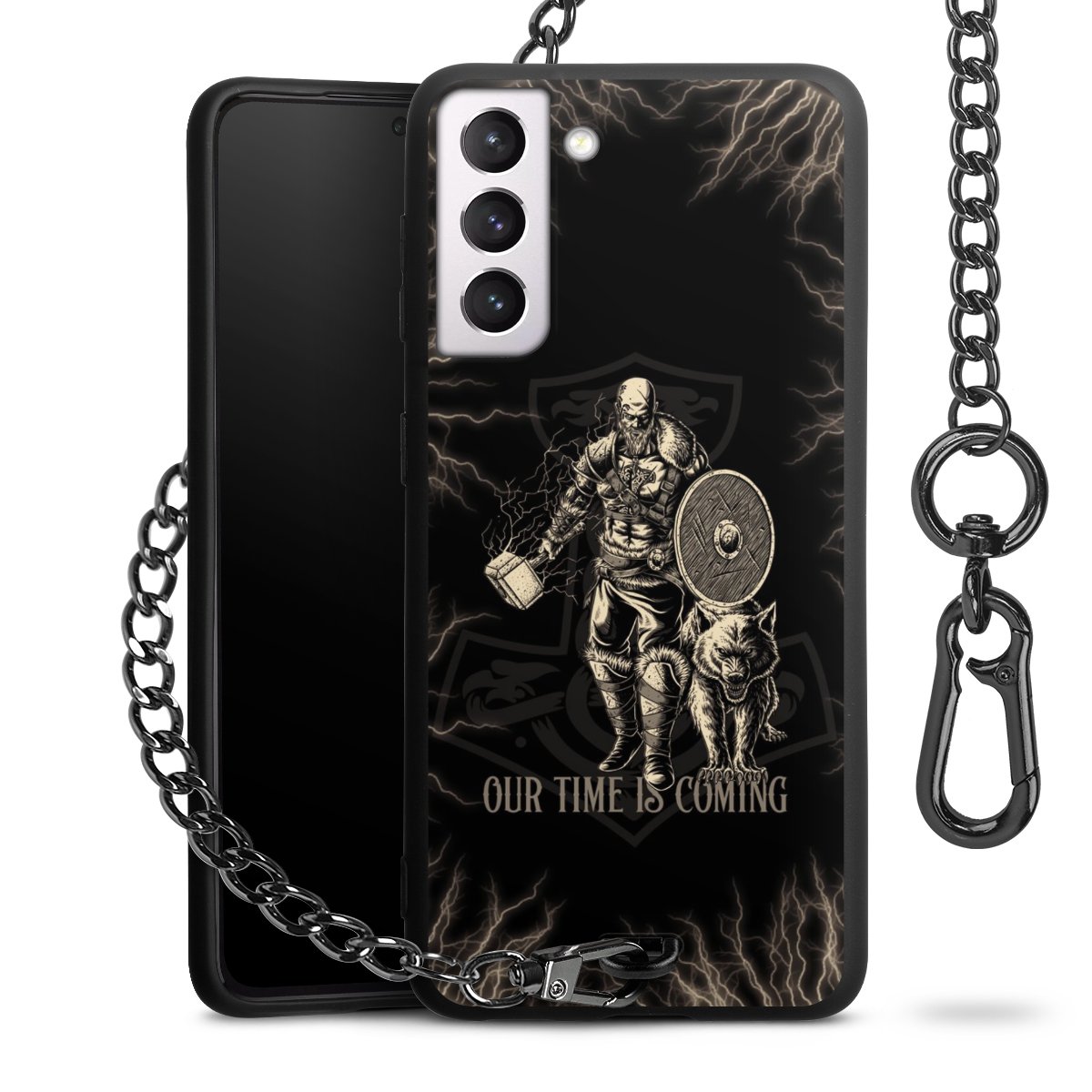 • Mattschwarze Handyhülle mit Metallkette