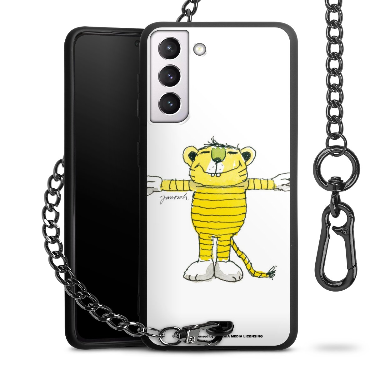 Die mattschwarze Silikon-Handyhülle besteht aus robustem TPU (thermoplastisches Polyurethan). Sie ist flexibel und schützt Dein Smartphone vor Stößen und Kratzern. Die Kette sowie der Karabinerhaken sind aus Metall in Gunmetal-Optik gefertigt. Für dieses Produkt kommen ausschließlich TÜV-geprüfte Materialien zum Einsatz.