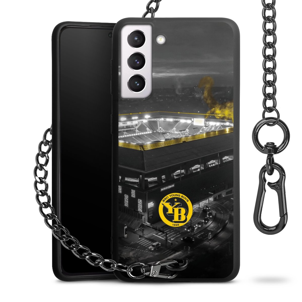 Die mattschwarze Silikon-Handyhülle besteht aus robustem TPU (thermoplastisches Polyurethan). Sie ist flexibel und schützt Dein Smartphone vor Stößen und Kratzern. Die Kette sowie der Karabinerhaken sind aus Metall in Gunmetal-Optik gefertigt. Für dieses Produkt kommen ausschließlich TÜV-geprüfte Materialien zum Einsatz.