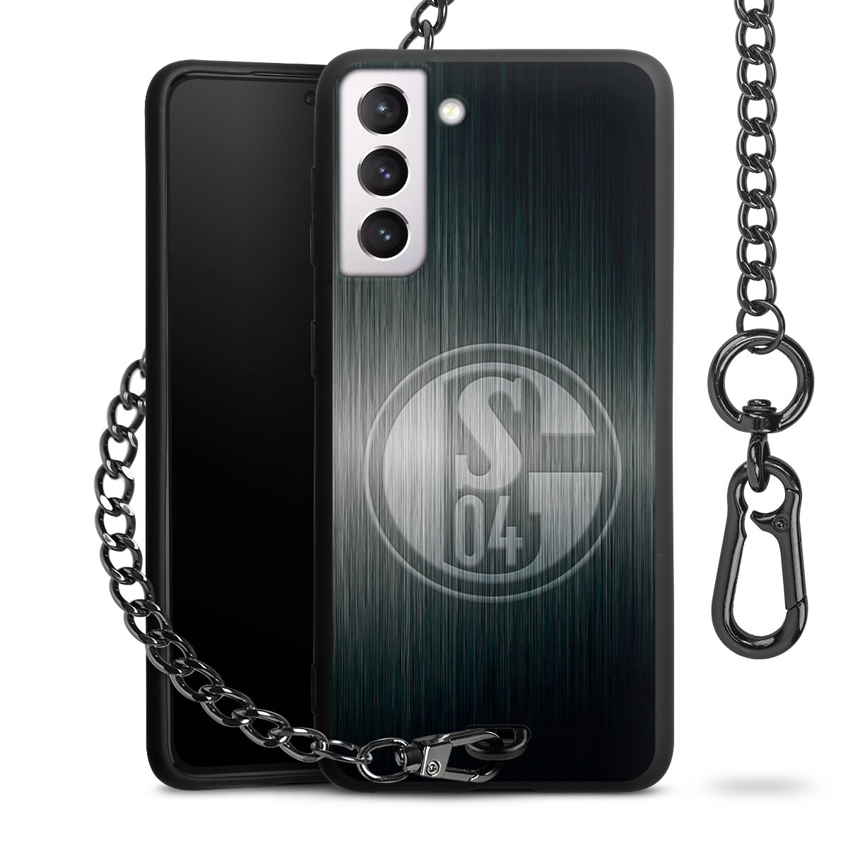 • Mattschwarze Handyhülle mit Metallkette