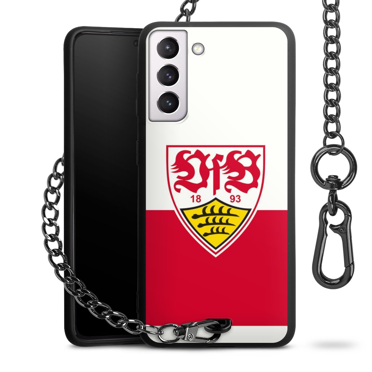 Die mattschwarze Silikon-Handyhülle besteht aus robustem TPU (thermoplastisches Polyurethan). Sie ist flexibel und schützt Dein Smartphone vor Stößen und Kratzern. Die Kette sowie der Karabinerhaken sind aus Metall in Gunmetal-Optik gefertigt. Für dieses Produkt kommen ausschließlich TÜV-geprüfte Materialien zum Einsatz.