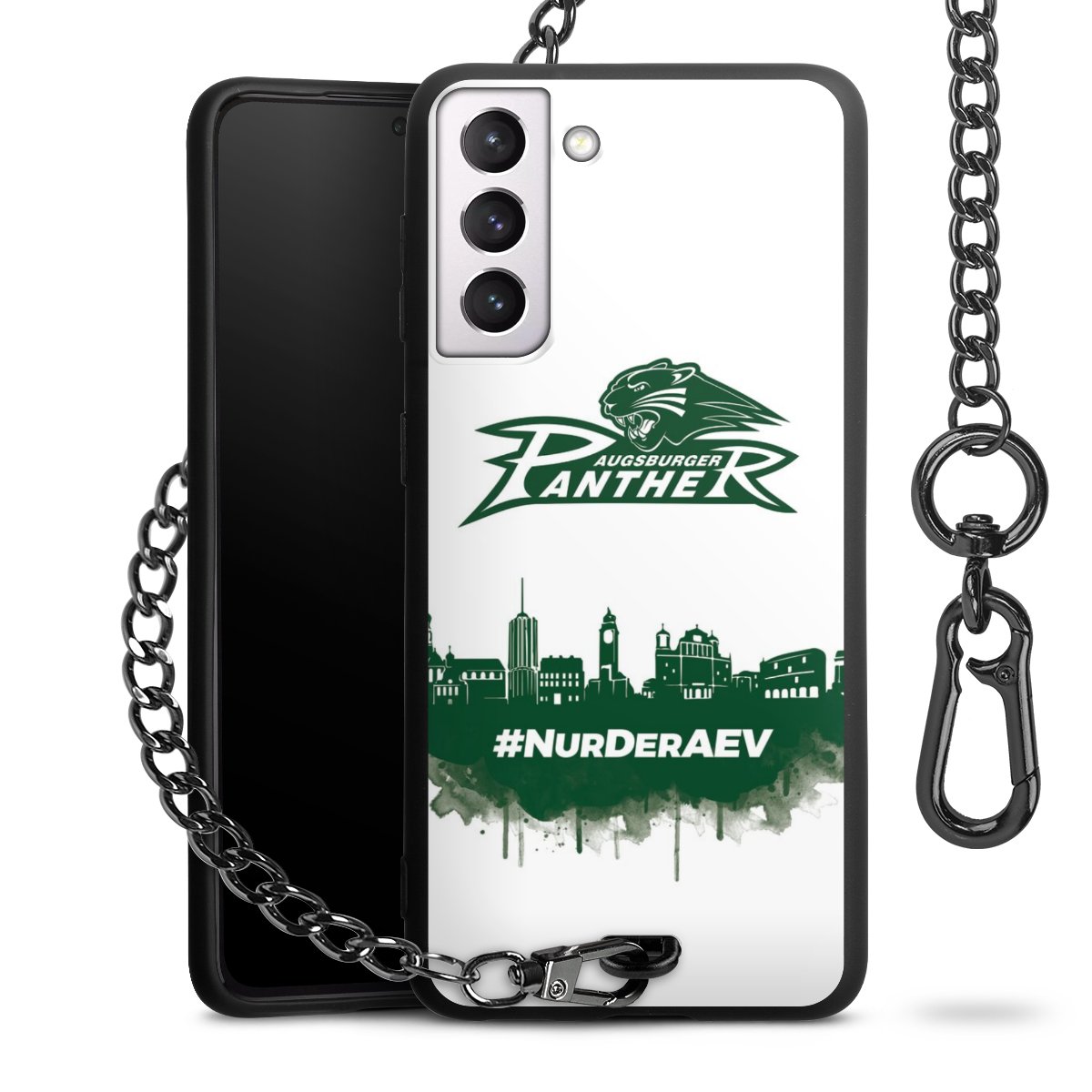 Die mattschwarze Silikon-Handyhülle besteht aus robustem TPU (thermoplastisches Polyurethan). Sie ist flexibel und schützt Dein Smartphone vor Stößen und Kratzern. Die Kette sowie der Karabinerhaken sind aus Metall in Gunmetal-Optik gefertigt. Für dieses Produkt kommen ausschließlich TÜV-geprüfte Materialien zum Einsatz.