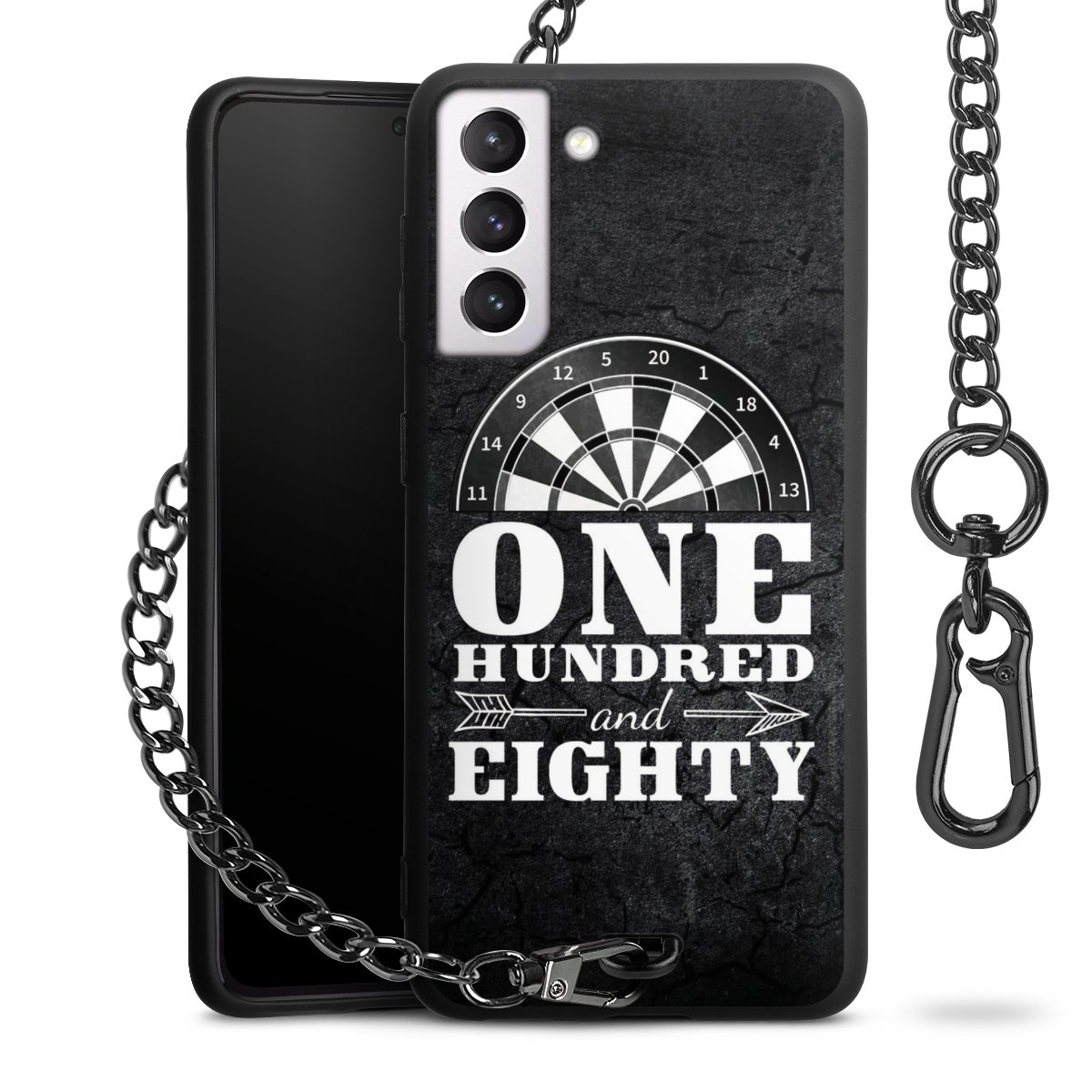 - Mattschwarze Handyhülle mit Metallkette