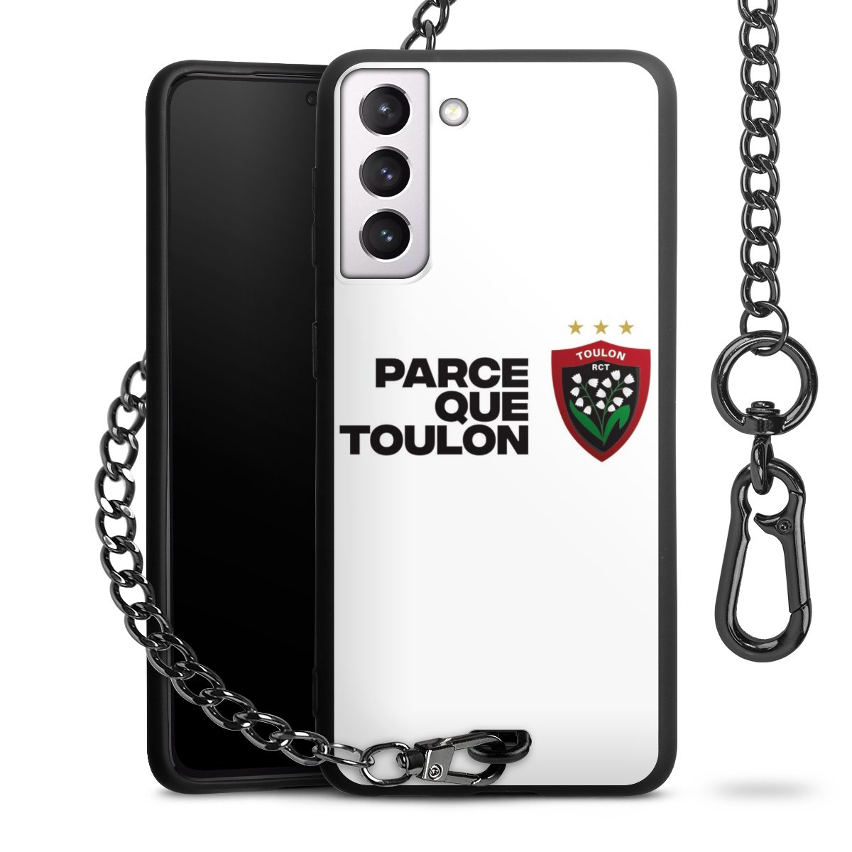 Die mattschwarze Silikon-Handyhülle besteht aus robustem TPU (thermoplastisches Polyurethan). Sie ist flexibel und schützt Dein Smartphone vor Stößen und Kratzern. Die Kette sowie der Karabinerhaken sind aus Metall in Gunmetal-Optik gefertigt. Für dieses Produkt kommen ausschließlich TÜV-geprüfte Materialien zum Einsatz.