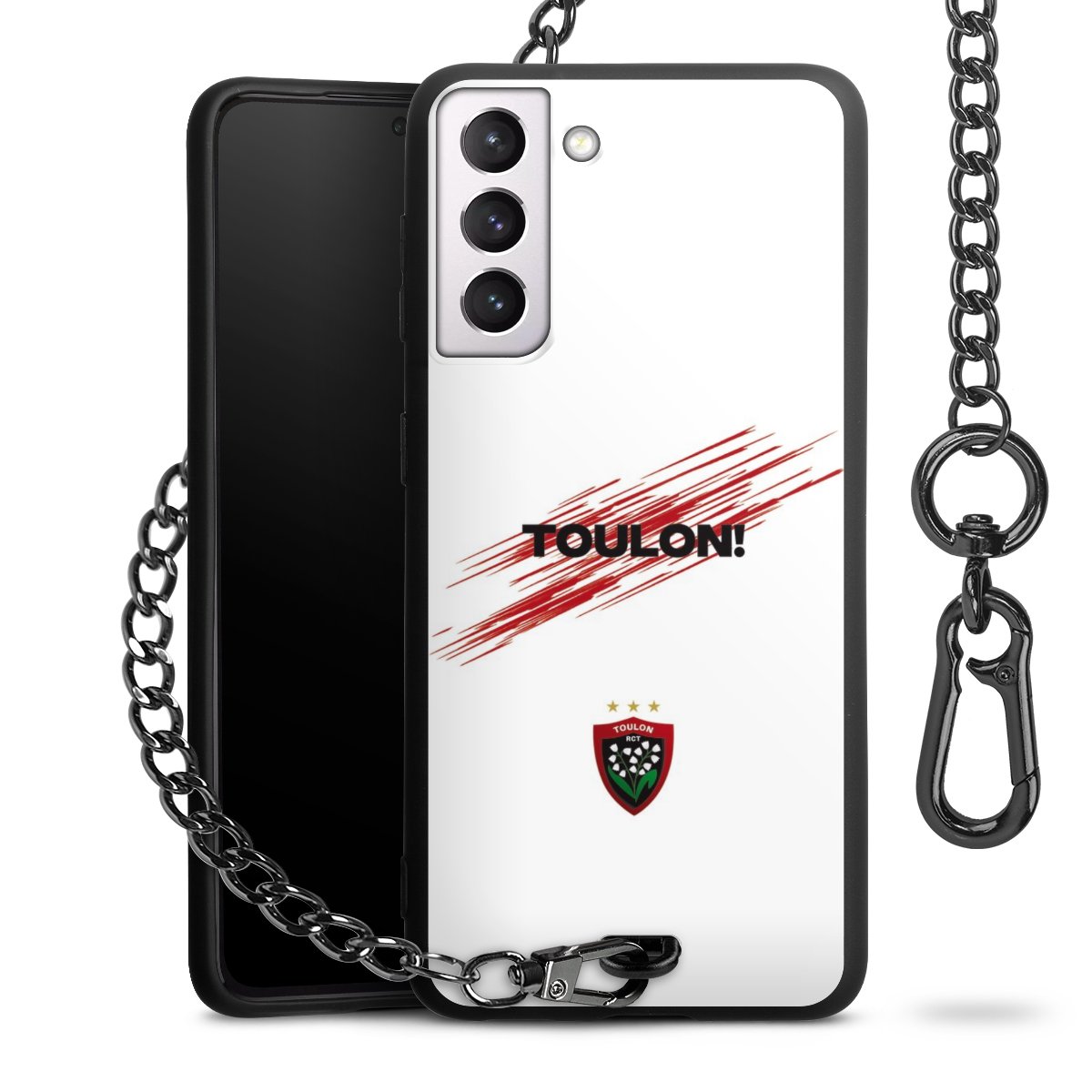 • Mattschwarze Handyhülle mit Metallkette