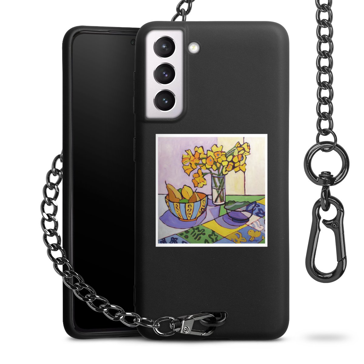 - Mattschwarze Handyhülle mit Metallkette