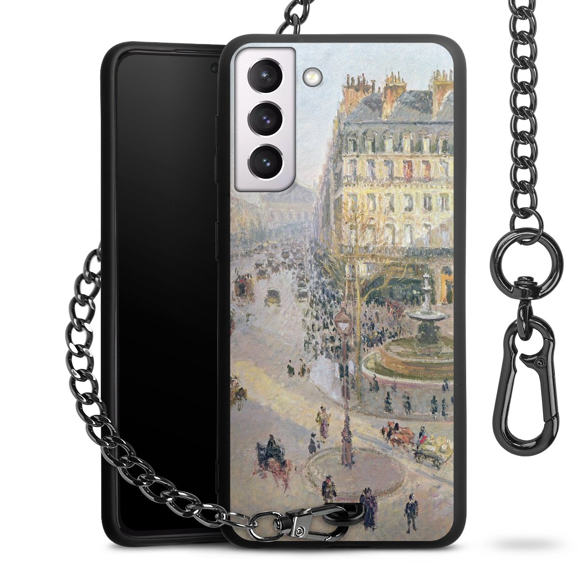 • Mattschwarze Handyhülle mit Metallkette