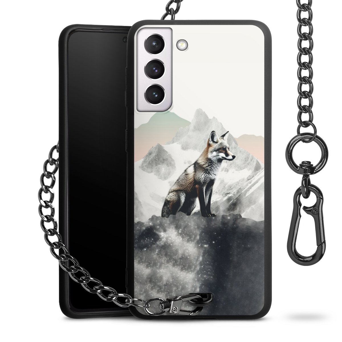 • Mattschwarze Handyhülle mit Metallkette