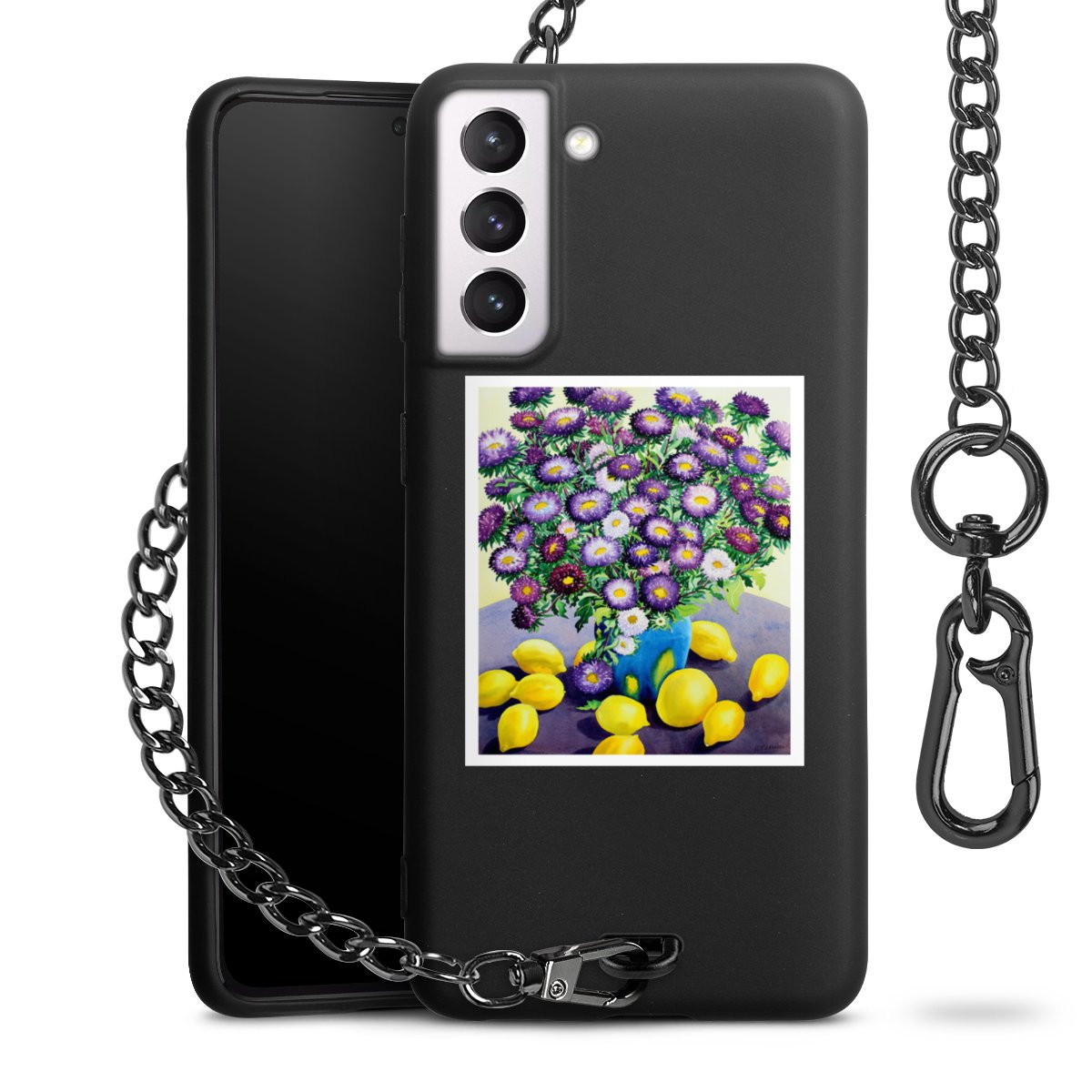 - Mattschwarze Handyhülle mit Metallkette