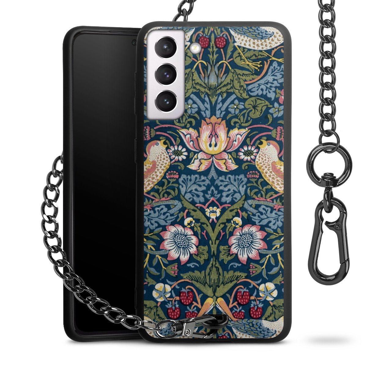Die Handyhülle verfügt über eine mittig am unteren Rand platzierte Öse, an der die Metallkette stabil befestigt ist. Bestelle die Hülle einfach für Dein Smartphone-Modell, dann passt sie wie angegossen und Du brauchst sie bloß einmal anzudrücken. Handy in die Tasche, Karabiner an den Hosenbund – schon kann die Party starten.