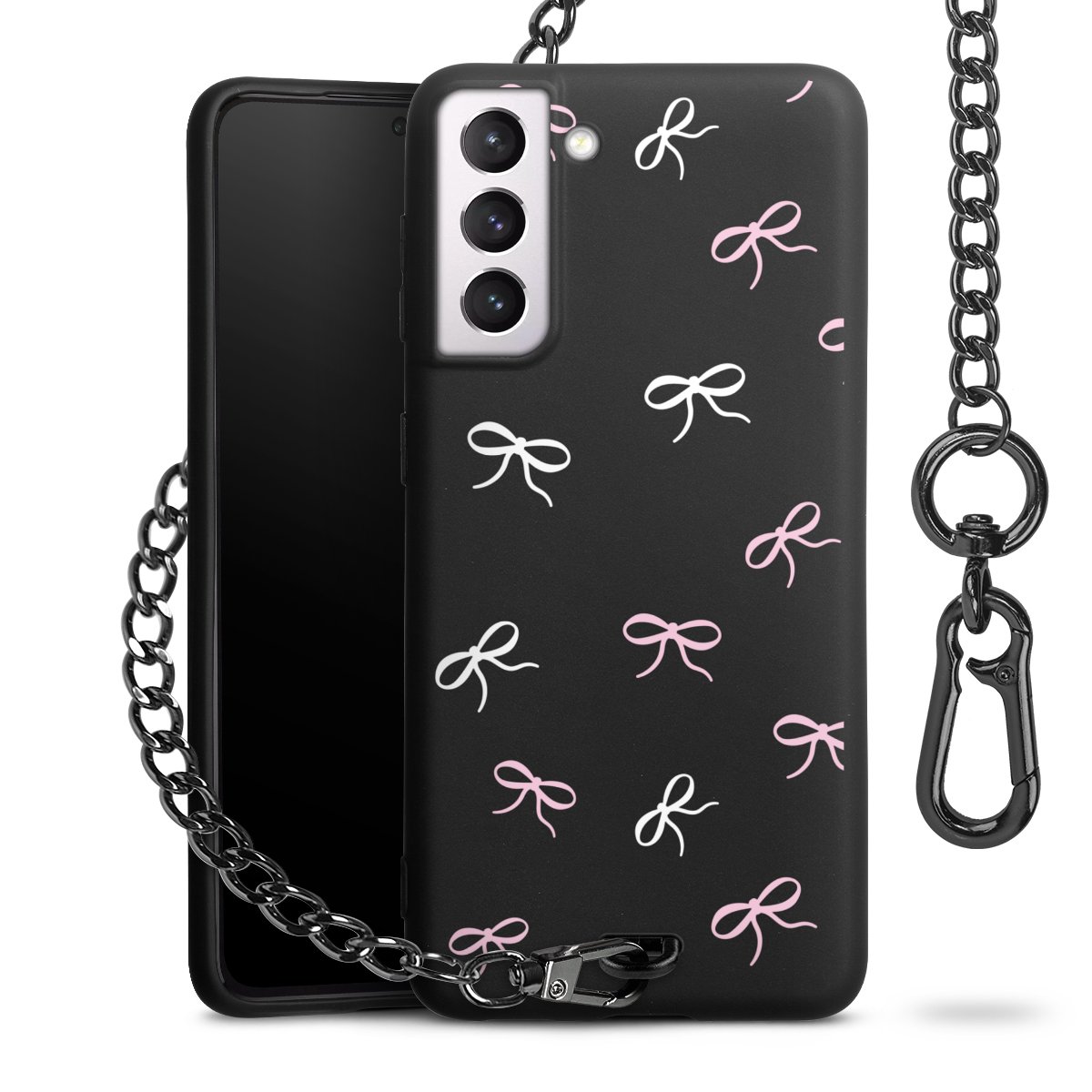 - Mattschwarze Handyhülle mit Metallkette