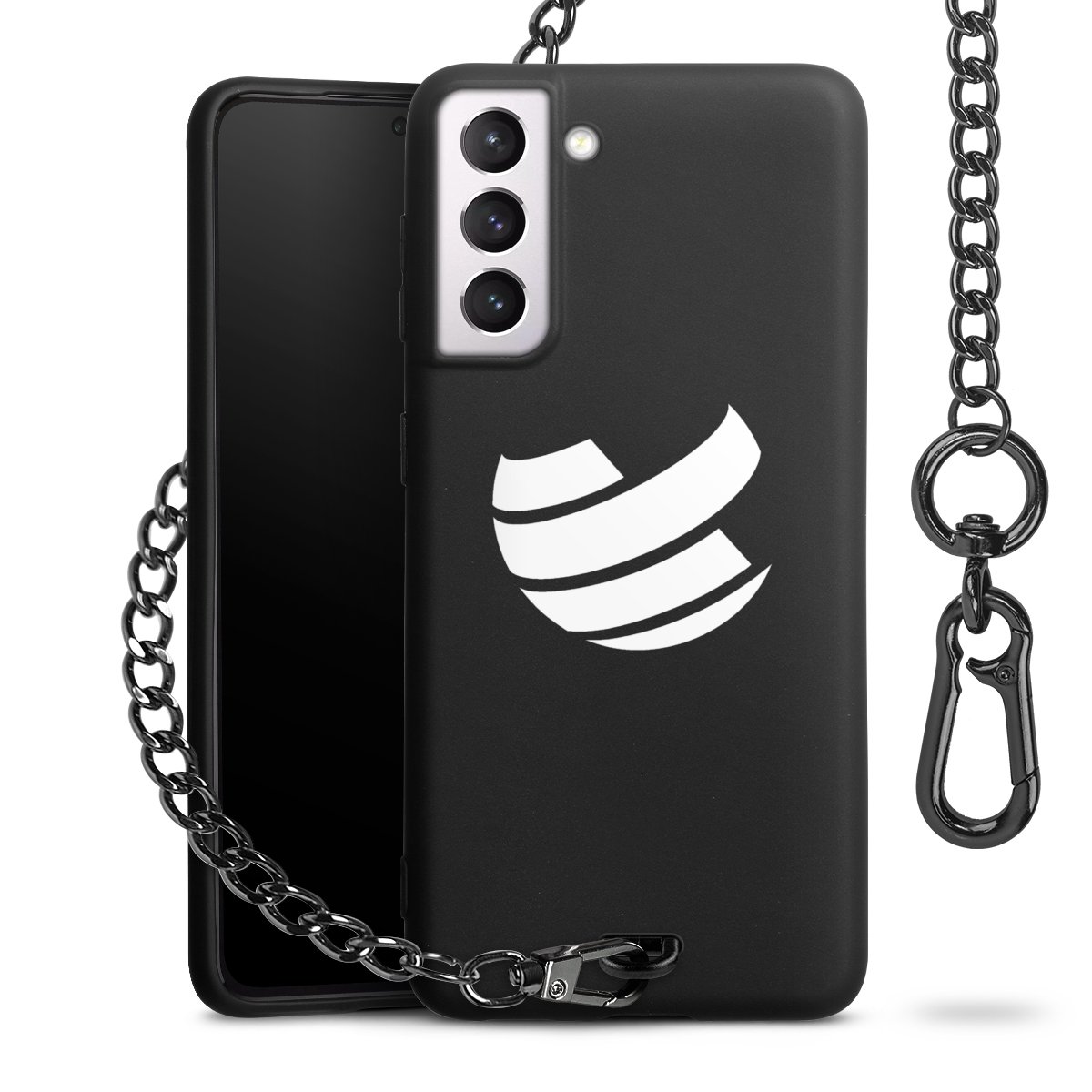 • Mattschwarze Handyhülle mit Metallkette