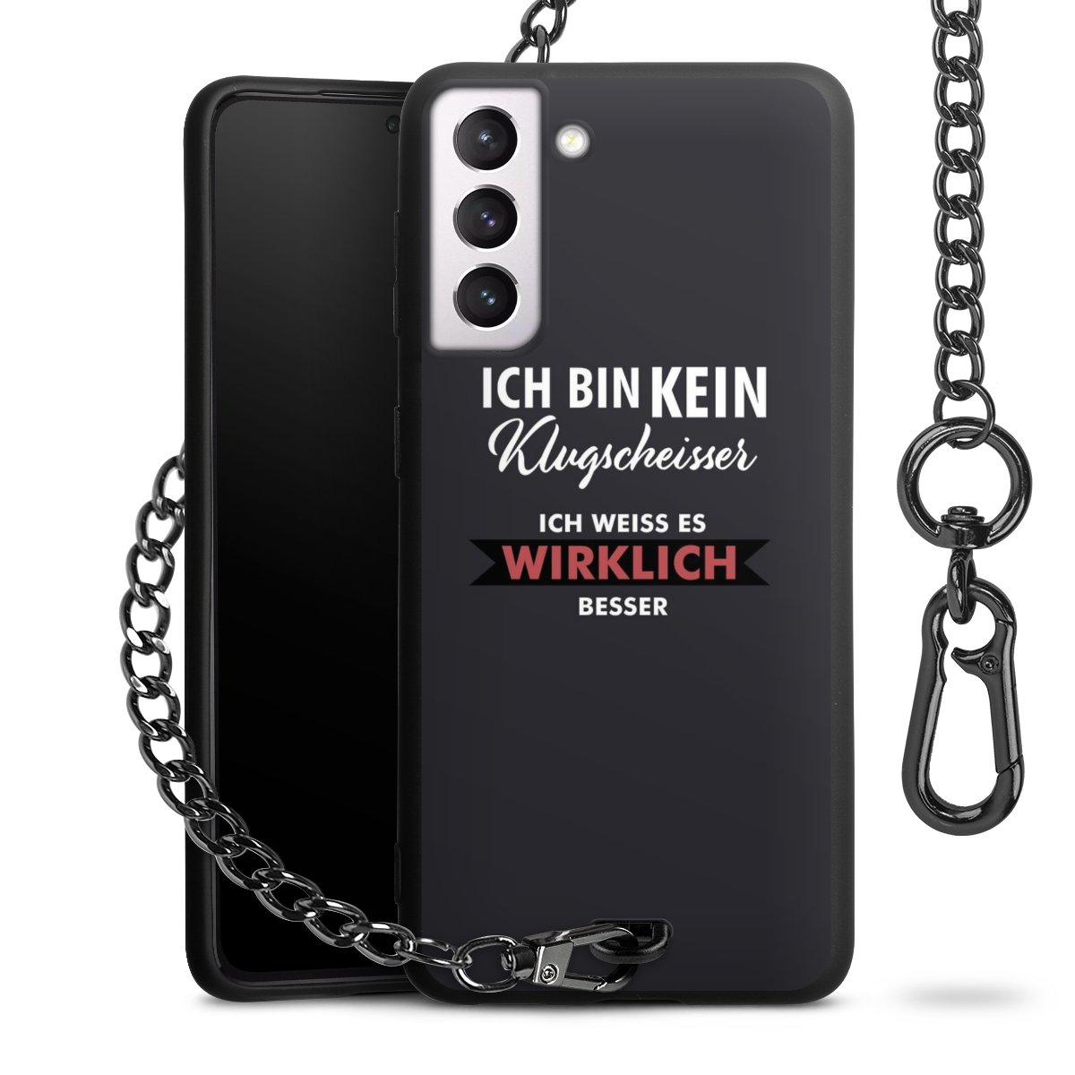 - Mattschwarze Handyhülle mit Metallkette