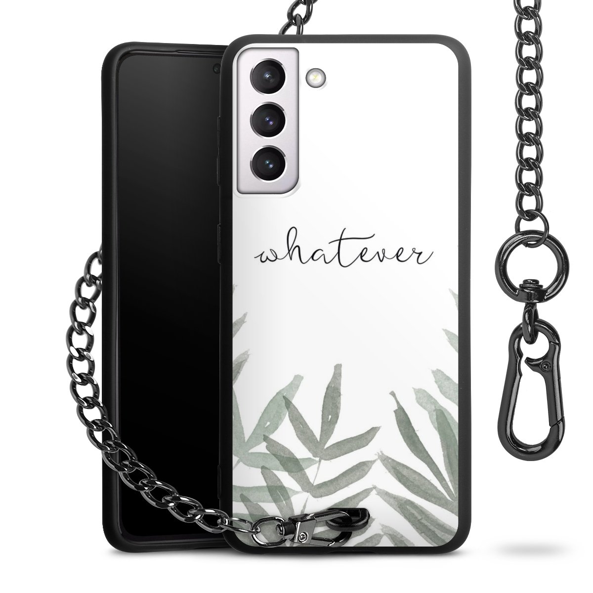 • Mattschwarze Handyhülle mit Metallkette