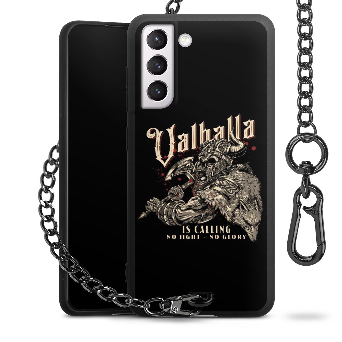 • Mattschwarze Handyhülle mit Metallkette