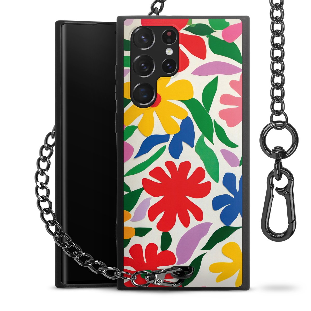 • Mattschwarze Handyhülle mit Metallkette