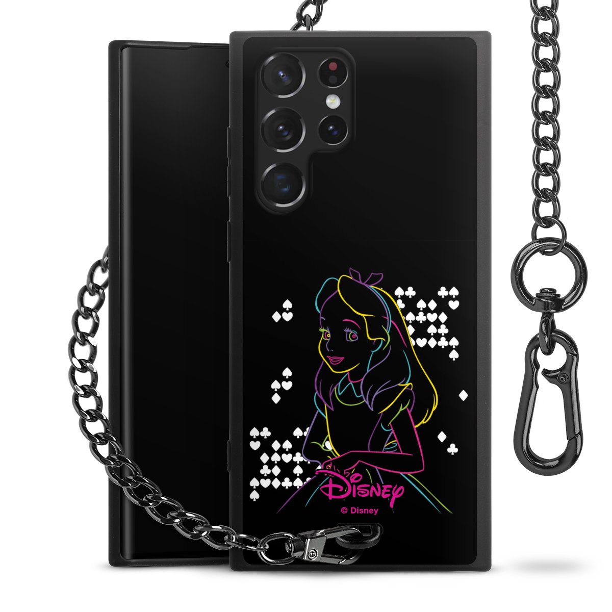 • Mattschwarze Handyhülle mit Metallkette