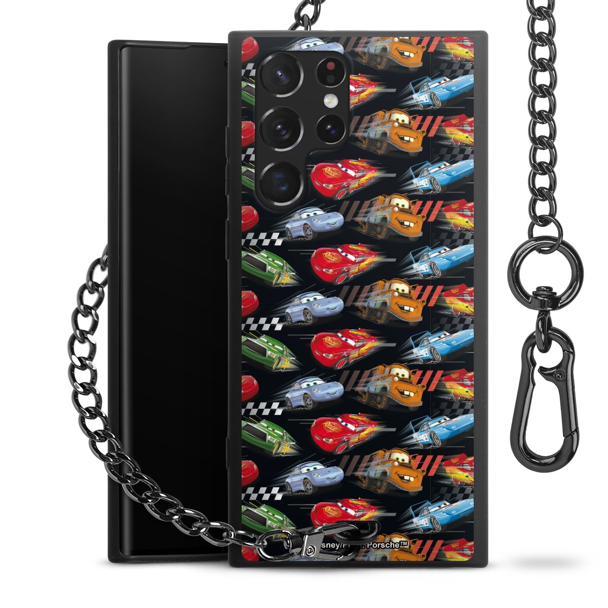 - Mattschwarze Handyhülle mit Metallkette