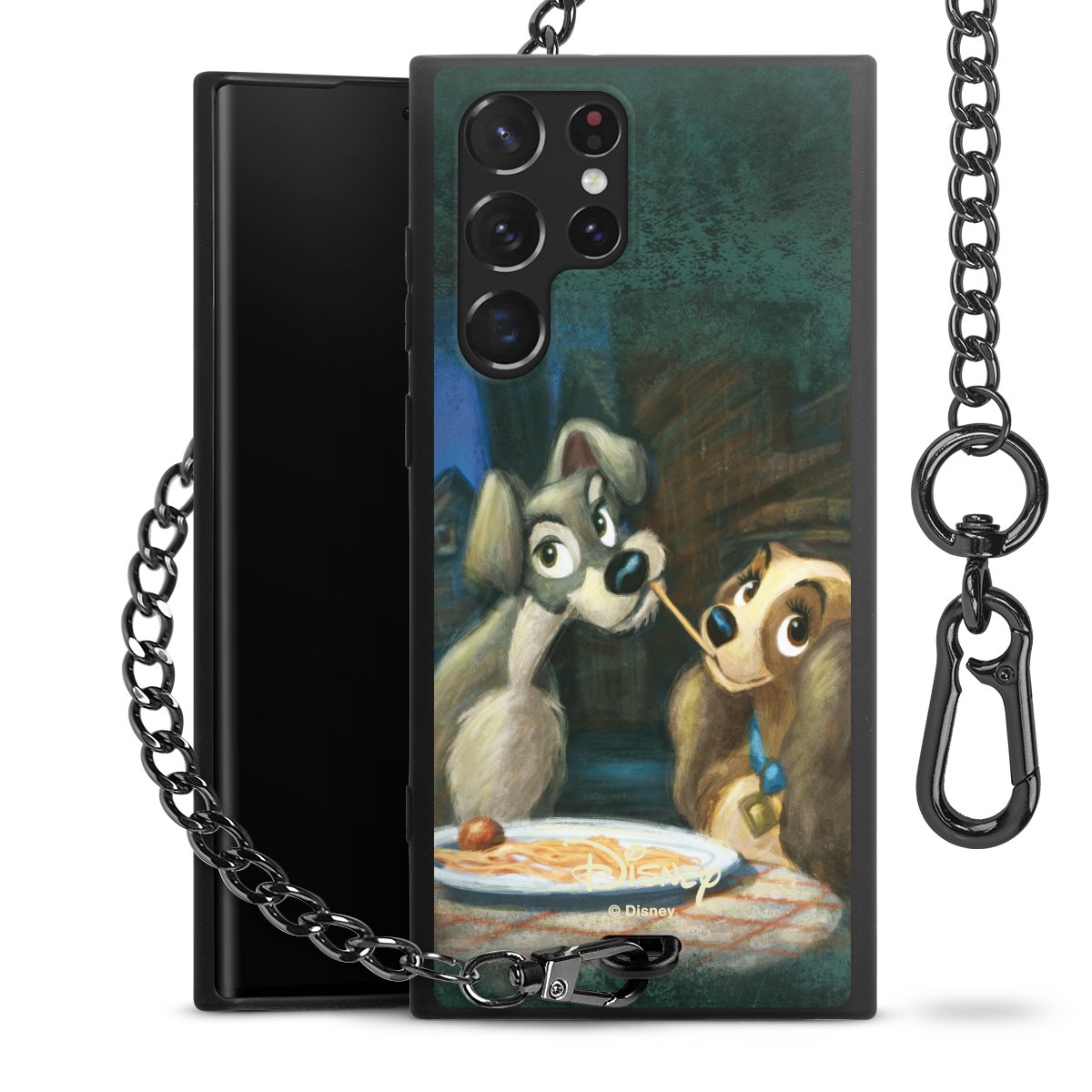 • Mattschwarze Handyhülle mit Metallkette
