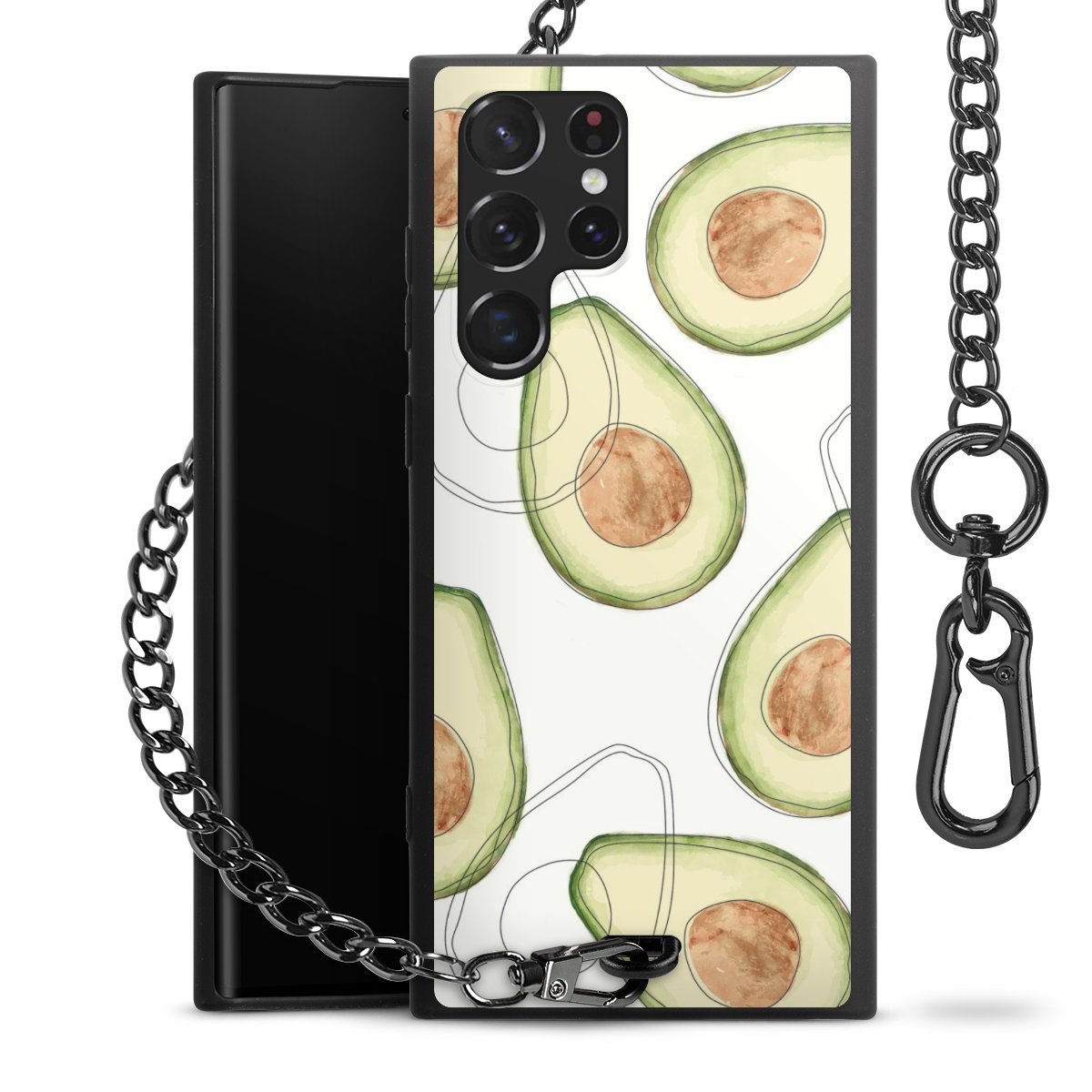 • Mattschwarze Handyhülle mit Metallkette