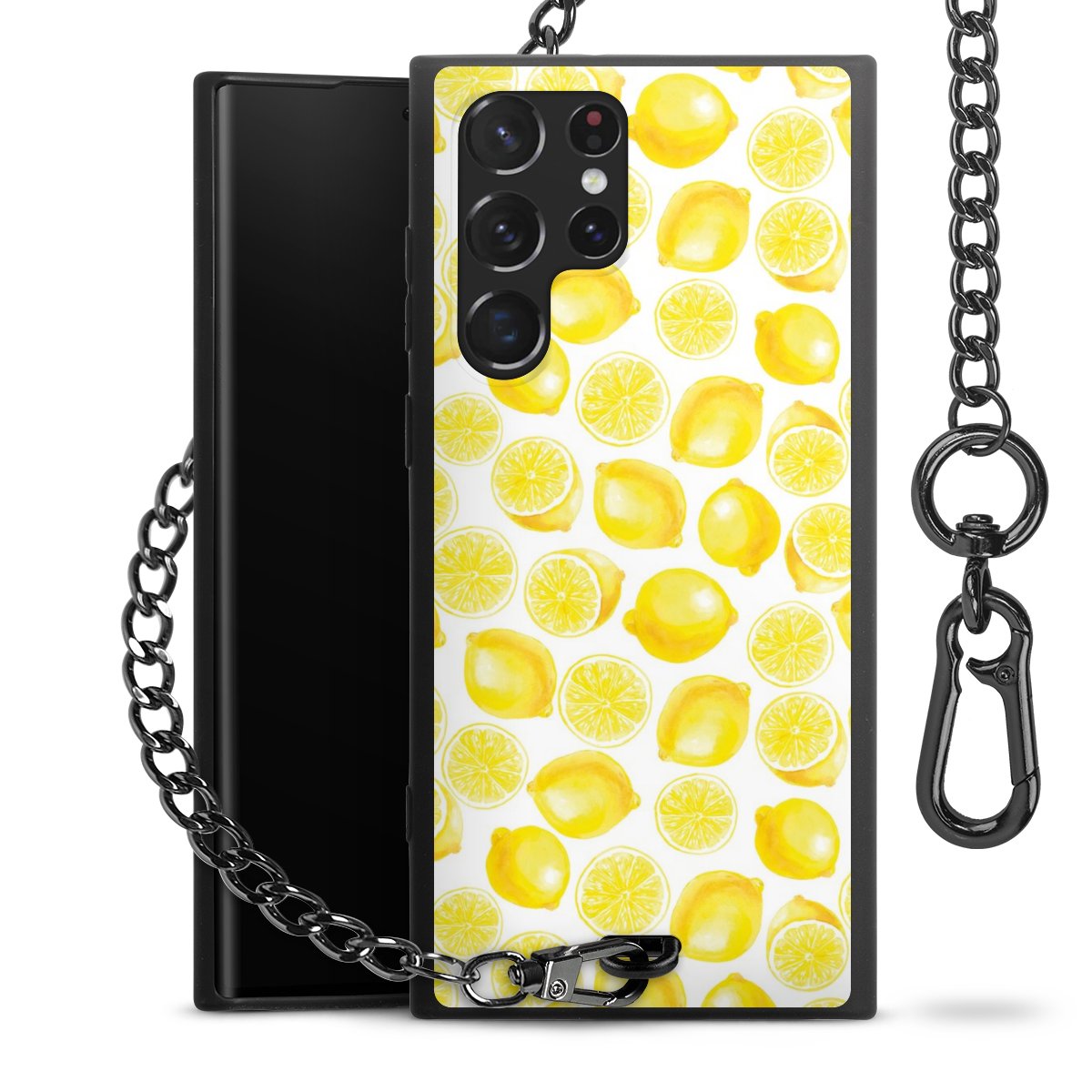 • Mattschwarze Handyhülle mit Metallkette